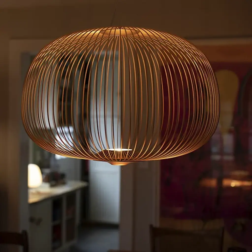 Inspired by the ethereal beauty of light and motion combined, the Spokes 3 LED Pendant from Foscarini brings an elegant statement to spaces. Its structural open shade creates a stunning display of light and shows as slender metal rods curve gently to form a bulbous shape. Its LEDs are located at the base of the piece, sending light through the metal rods and out into the room for ambient illumination.