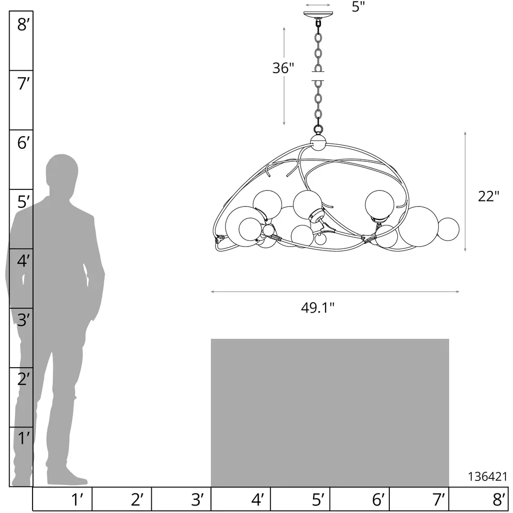 Sprig 6 Light 49.1 Inch Vintage Platinum Pendant Ceiling Light In Opaline, Circular