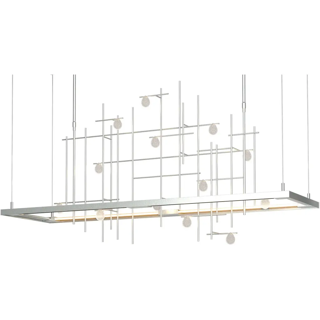 Raindrops cascading down a trellis were the inspiration behind Spring. Each "raindrop" created by the Vermont artisans at AO Glass, captures the light, resulting in an unexpected sparkle. The LED light guide is independently adjustable from the sculpture.