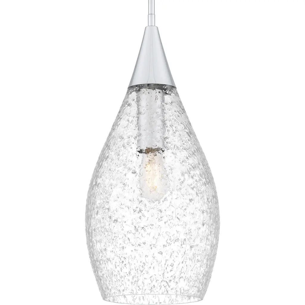 Polished chrome and a unique embedded glass shade make a classic yet glamorous pairing in Spruce pendant lights. Part of the popular Platinum by Quoizel collection, Spruce lends itself to a variety of modern or contemporary style settings. Hang Spruce pendants over any kitchen island or bar area for a touch of understated luxury.