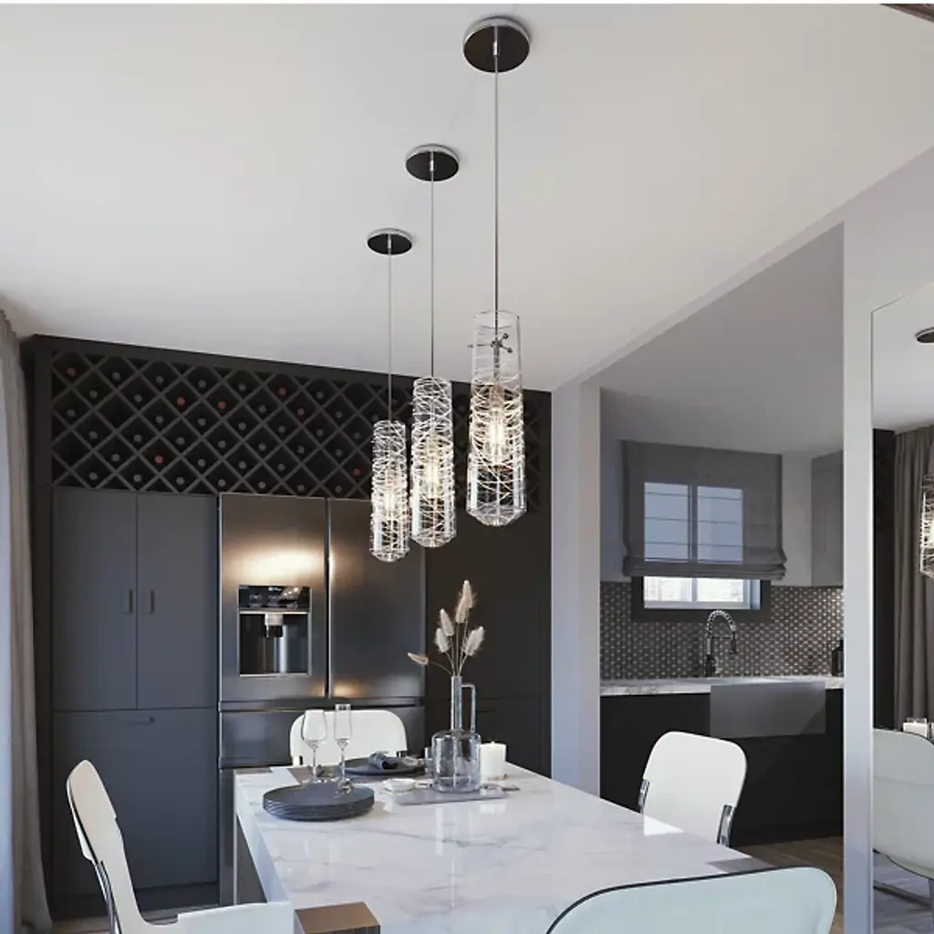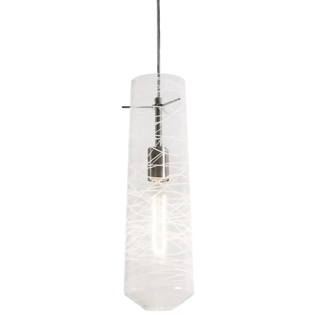 A quick burst of creative beauty. The Spun Mini Pendant by AFX lives within the confines of traditional overhead lighting, and yet the exquisite detail and minimalist influence make this piece unlike any other. Handblown Glass surrounds a slender bulb and a slight Metal frame. The socket and support structure are all contained within the shade, turning every section of this fixture into an appealing accent. Along the sloping body, Molten Glass Cane detailing creates a vivid, artistic pattern. As light passes through the diffuser walls, it highlights the swirling lines and gives the pendant an even more powerful presence. An elegant piece of decor that delivers exceptional ambient lighting, you’ll adore this fixture in your living room or dining room.