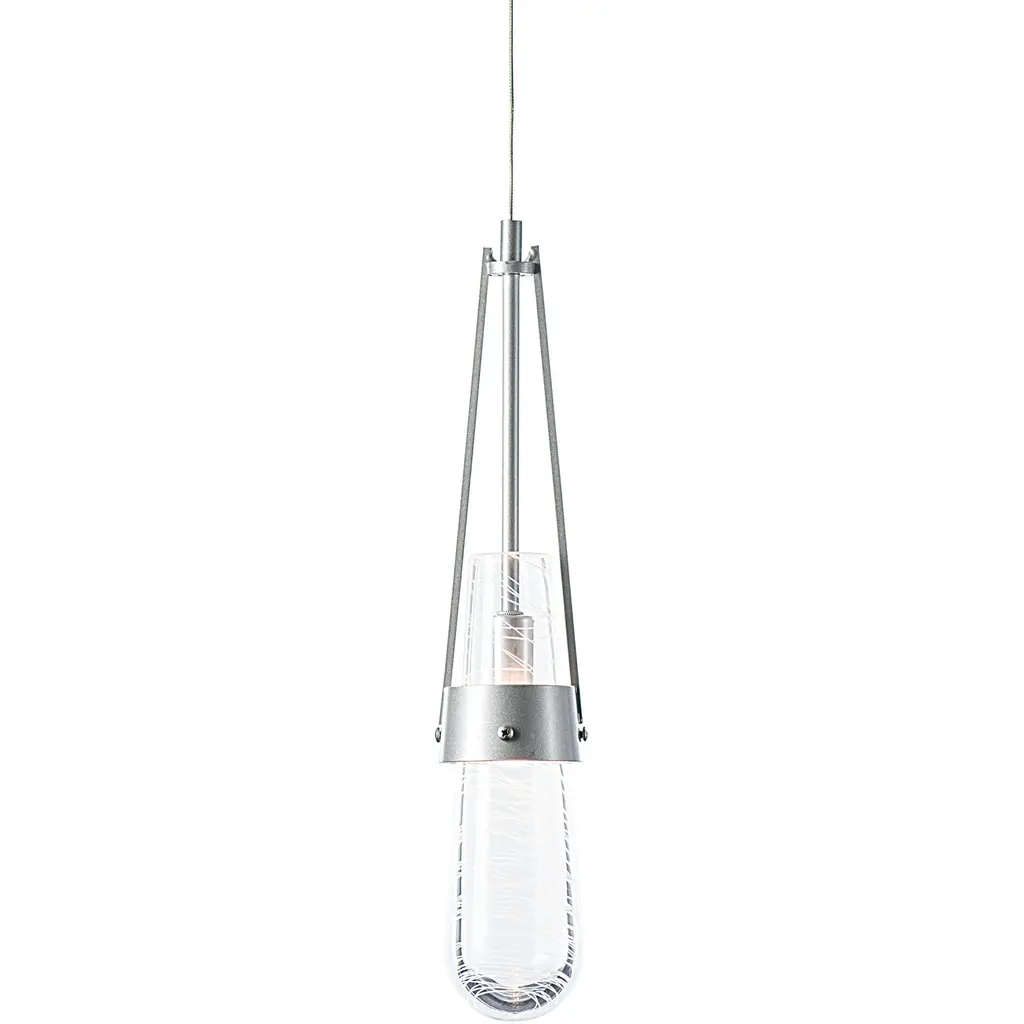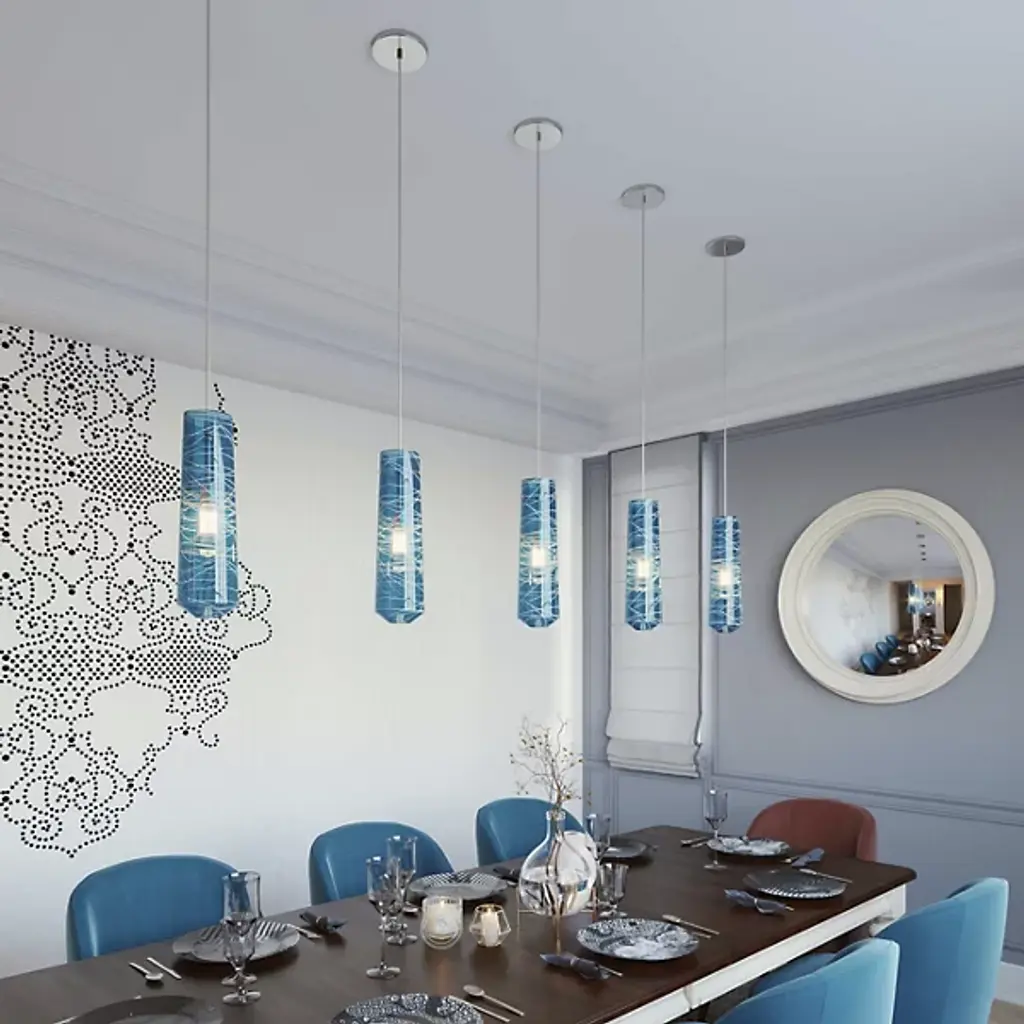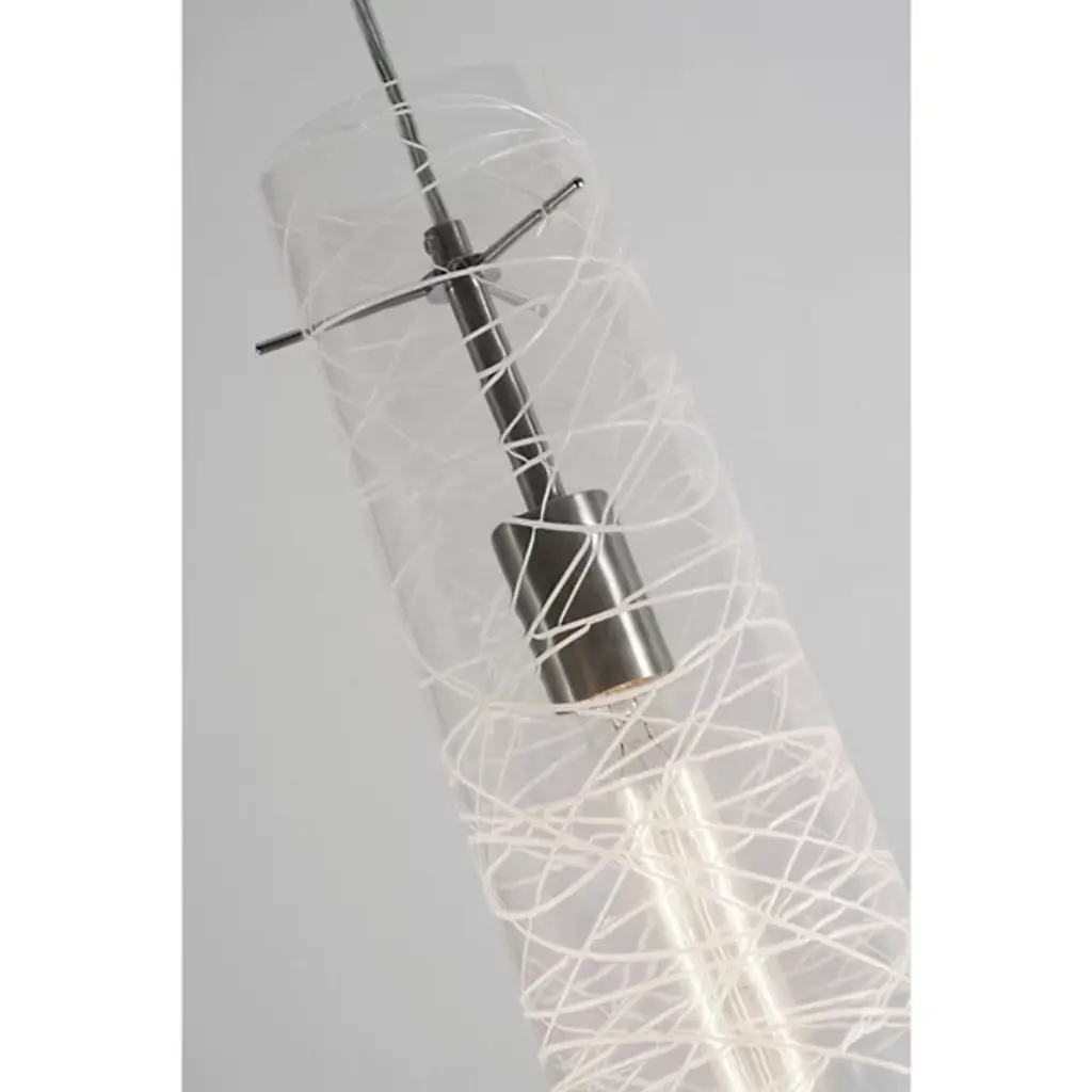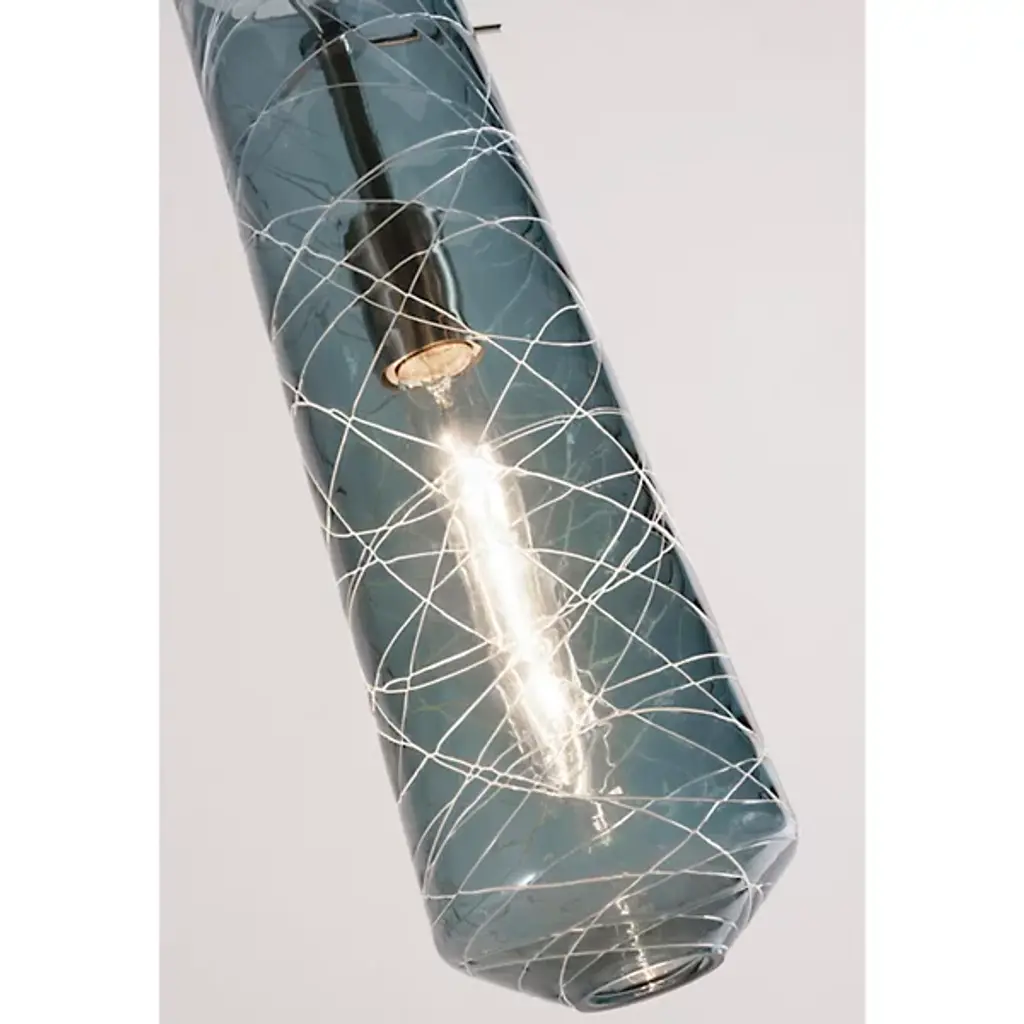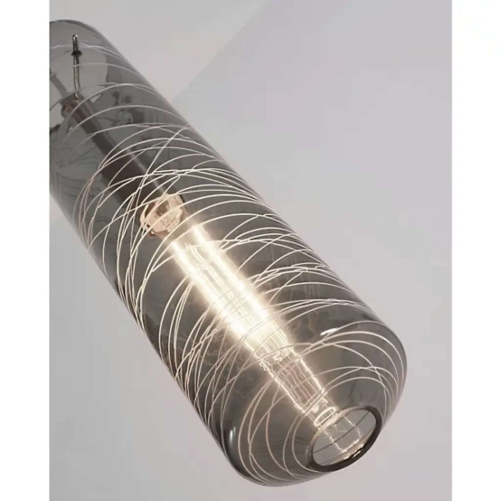 A quick burst of creative beauty. The Spun Mini Pendant by AFX lives within the confines of traditional overhead lighting, and yet the exquisite detail and minimalist influence make this piece unlike any other. Handblown Glass surrounds a slender bulb and a slight Metal frame. The socket and support structure are all contained within the shade, turning every section of this fixture into an appealing accent. Along the sloping body, Molten Glass Cane detailing creates a vivid, artistic pattern. As light passes through the diffuser walls, it highlights the swirling lines and gives the pendant an even more powerful presence. An elegant piece of decor that delivers exceptional ambient lighting, you’ll adore this fixture in your living room or dining room.