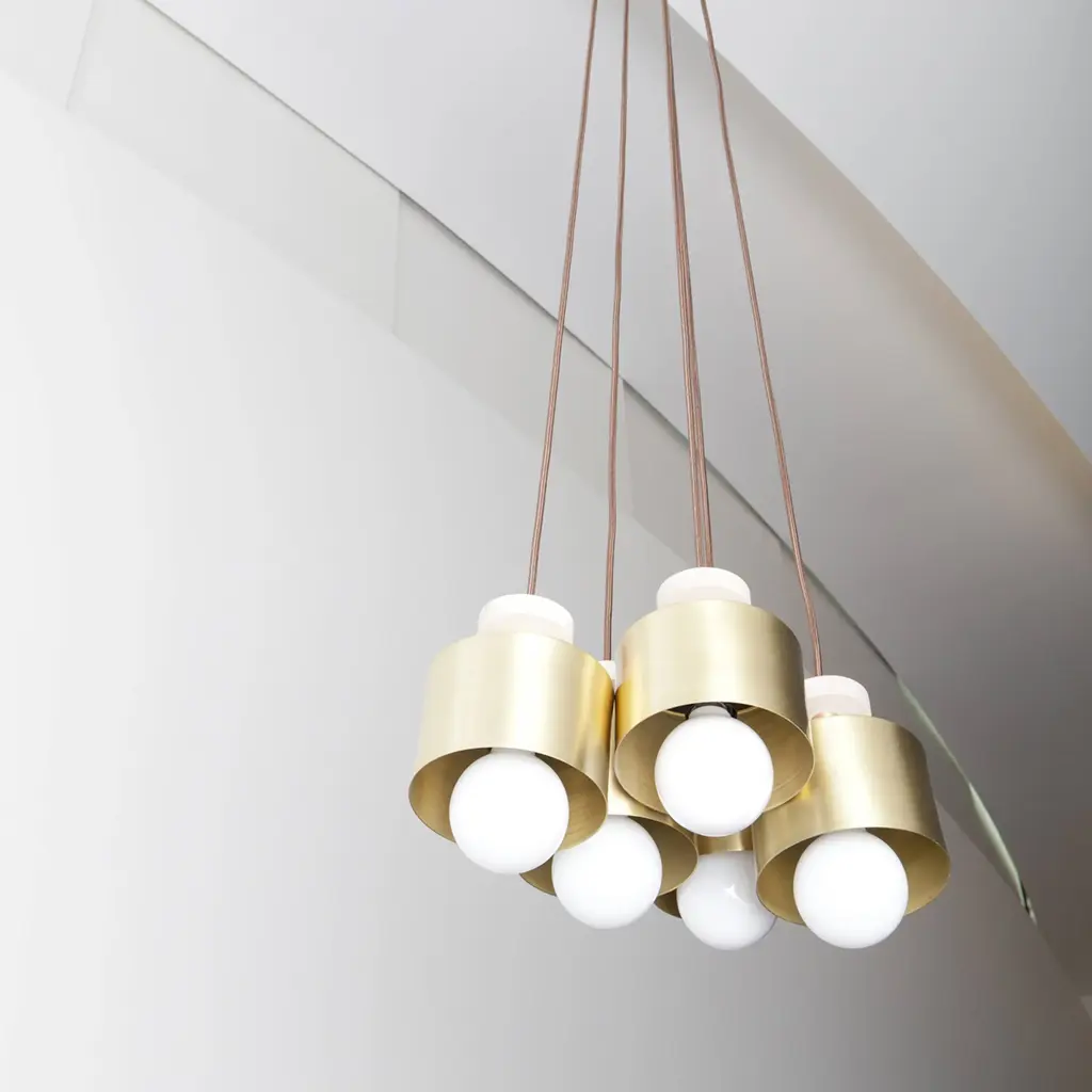 Ladies & Gentlemen studios' clustered Spun pendant is a tour-de-force of lighting drama and intrigue. As if they were fashioning jewelry, designers Dylan Davis and Jean Lee treated the globe lightbulb like a jewel that they were fitting into a complementary "setting." Spun's options include a polished brass, blackened brass, or frosted glass shade for the surround. The white interior reflector adjusts to highlight the exposed bulb much like a precious gem. In 3- or 5-piece clusters; custom configurations are available (inquire at A+R).