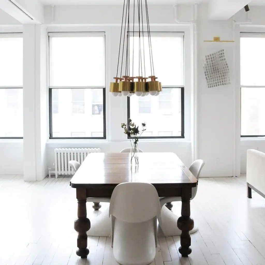 Ladies & Gentlemen studios' clustered Spun pendant is a tour-de-force of lighting drama and intrigue. As if they were fashioning jewelry, designers Dylan Davis and Jean Lee treated the globe lightbulb like a jewel that they were fitting into a complementary "setting." Spun's options include a polished brass, blackened brass, or frosted glass shade for the surround. The white interior reflector adjusts to highlight the exposed bulb much like a precious gem. In 3- or 5-piece clusters; custom configurations are available (inquire at A+R).