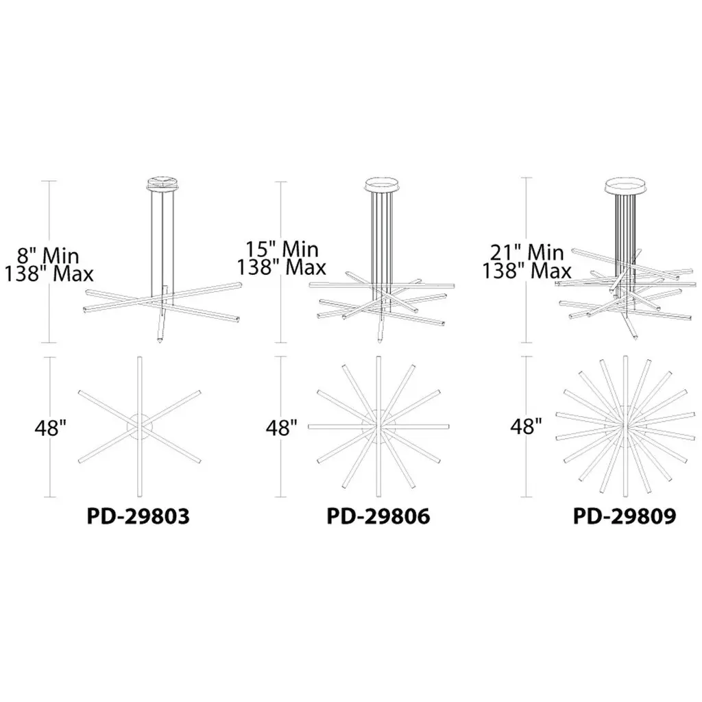 A chandelier that is designed to your tastes. Simply adjust the hanging height and slope of any stem exactly how you want to express your artistry. Thin powered suspension wires ensure a clean look no matter how you hang it.