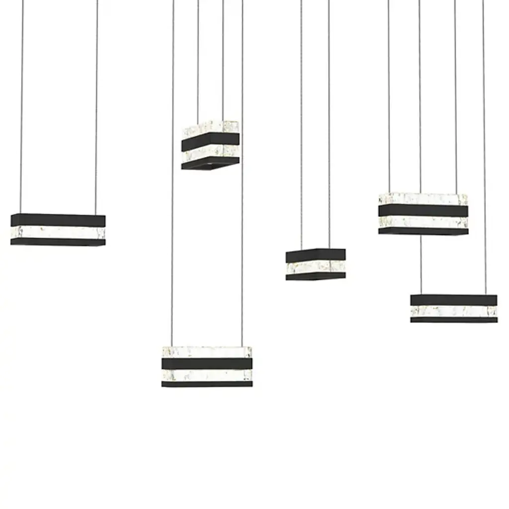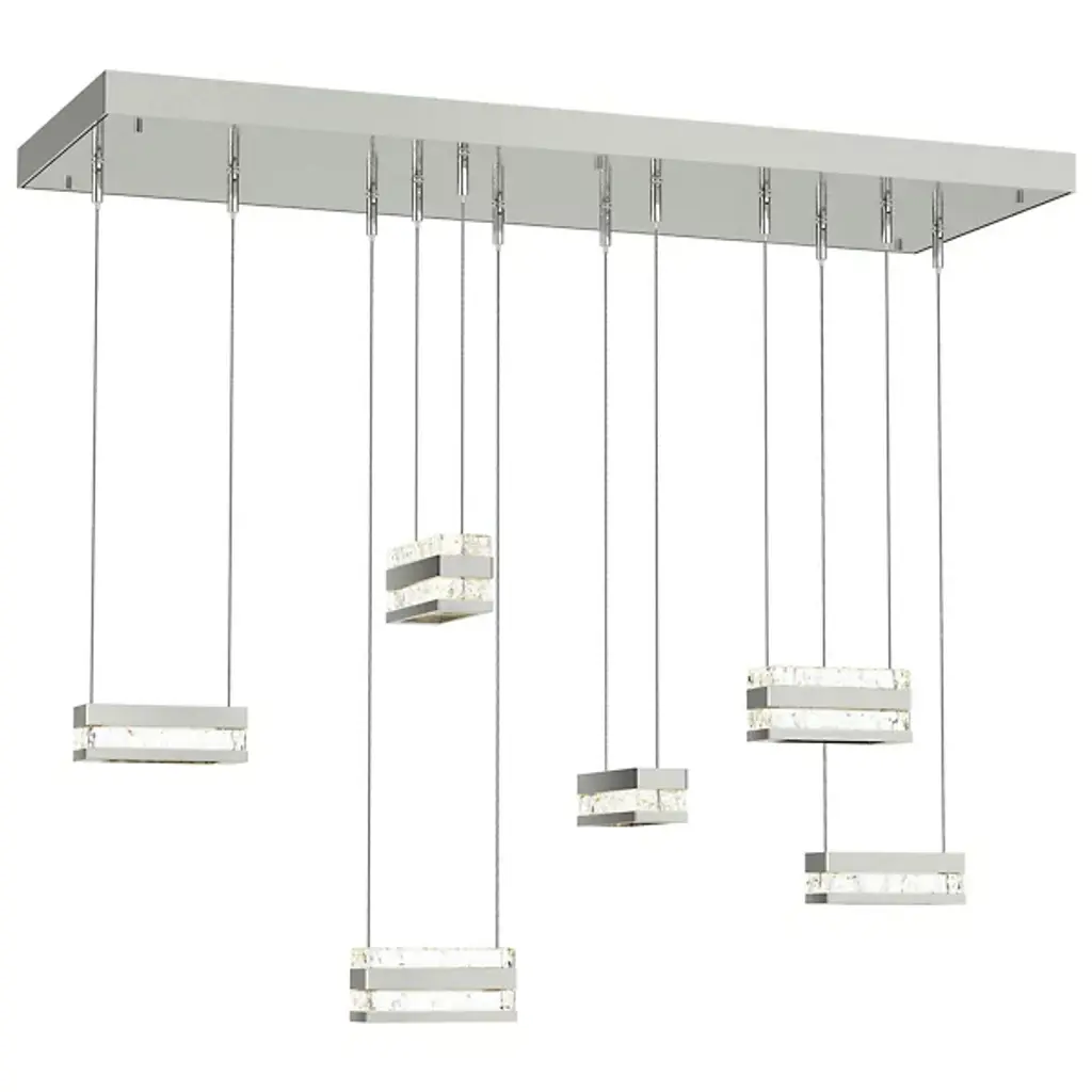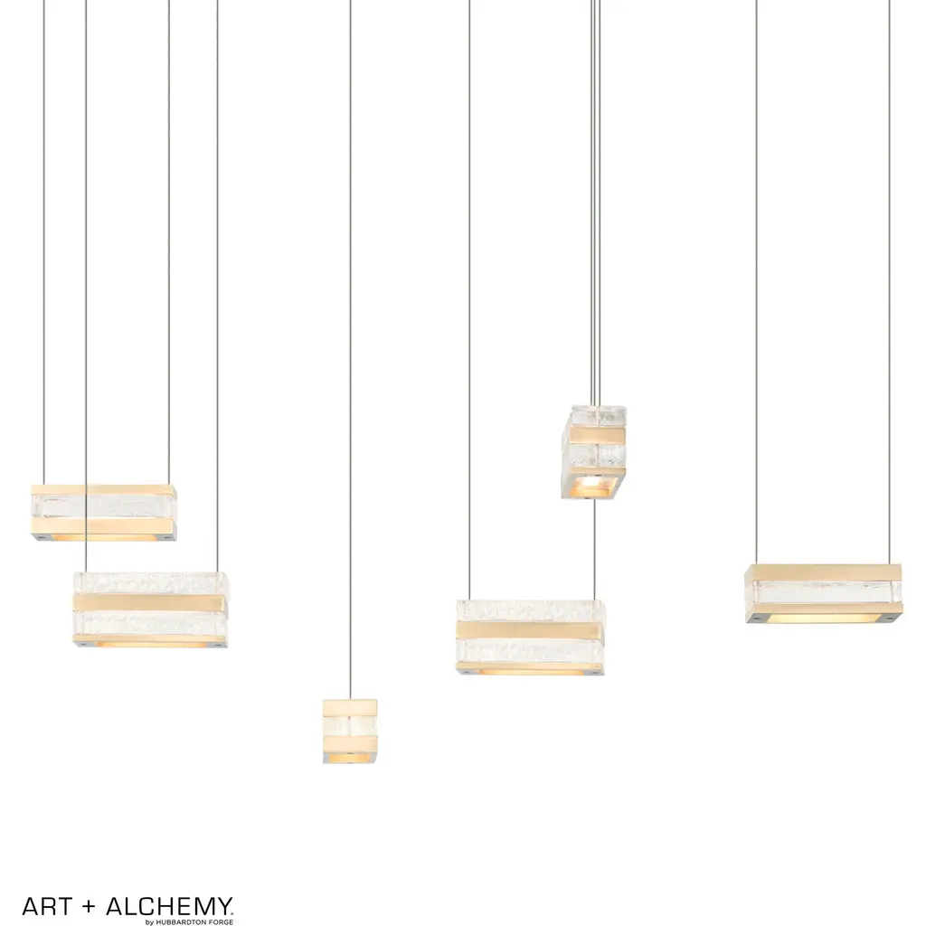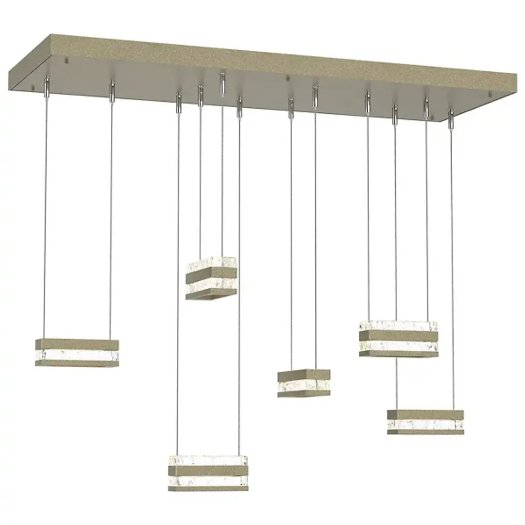 The Hubbardton Forge Stacks Rectangular LED Multi-Light Pendant is not just a functional accessory, it is a work of art. This handcrafted pendant fixture, made in Vermont, lends an air of artisanal sophistication to your interiors. Its hardwired system means a seamless integration with your home structure, enhancing its streamlined appeal. The aluminum and glass construction suggests a nod towards modern design principles. The item features a distinct rectangular shape, an element that adds a fresh distinction to its overall design aesthetic. This LED pendant is perfect for creating a bespoke atmosphere in your living room, dining area or entrance hall.