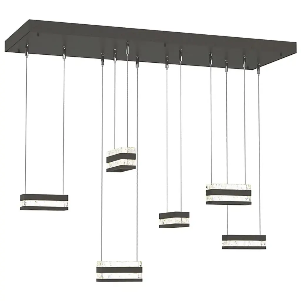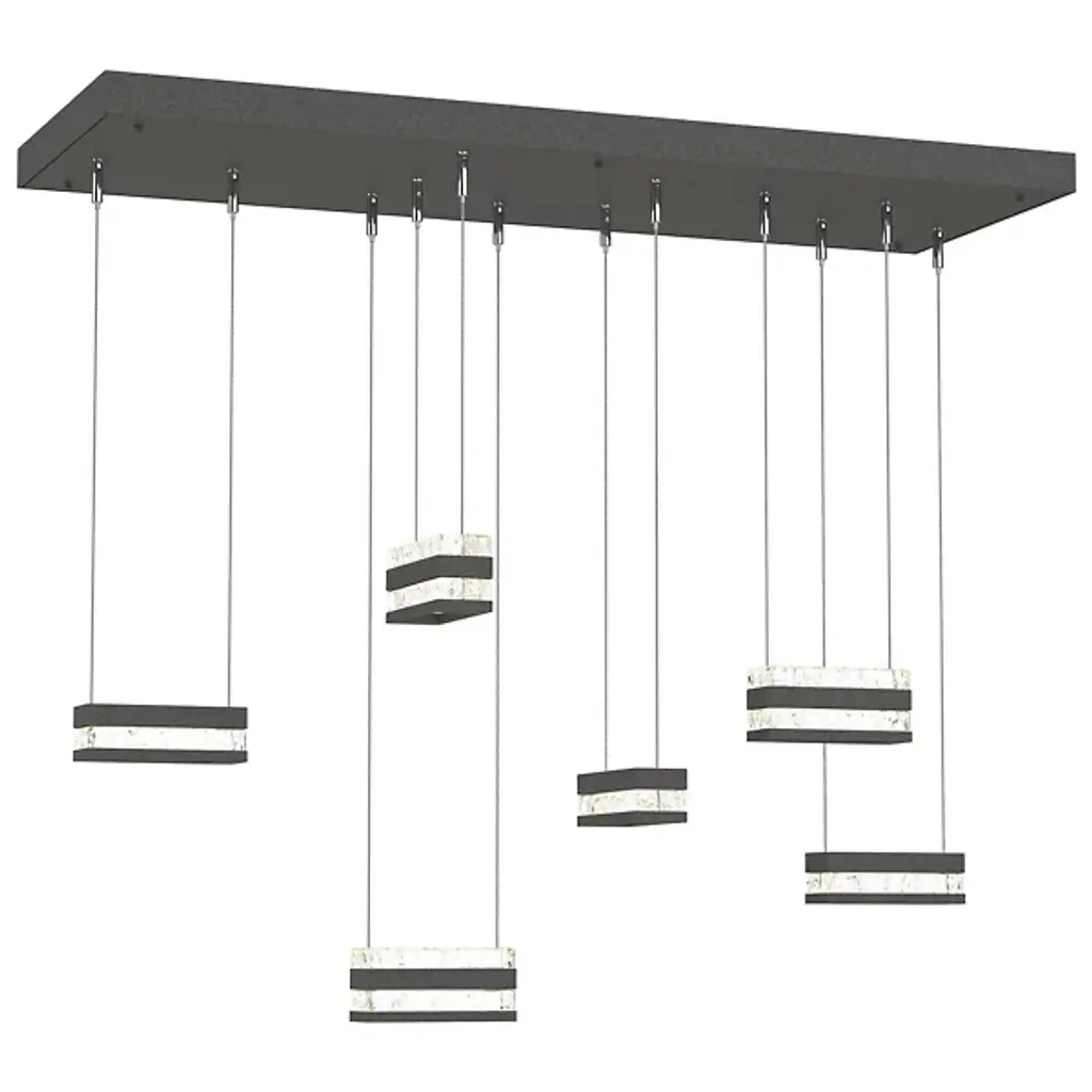 The Hubbardton Forge Stacks Rectangular LED Multi-Light Pendant is not just a functional accessory, it is a work of art. This handcrafted pendant fixture, made in Vermont, lends an air of artisanal sophistication to your interiors. Its hardwired system means a seamless integration with your home structure, enhancing its streamlined appeal. The aluminum and glass construction suggests a nod towards modern design principles. The item features a distinct rectangular shape, an element that adds a fresh distinction to its overall design aesthetic. This LED pendant is perfect for creating a bespoke atmosphere in your living room, dining area or entrance hall.