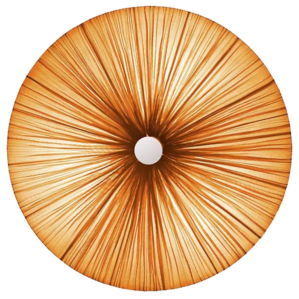 An ethereal display of neatly pleated illumination. The Stand By Pendant by Aqua Creations brings an air of sophistication and character to your home. It features a round disc shade, enveloped in pleated tussar silk to create the signature sculptural look. This handmade shade is suspended from a custom-made metal pole and houses four lamps that produce warm lighting across a wider space. Whether on its own or in clusters, this fixture brings a distinctive flair to contemporary spaces.
