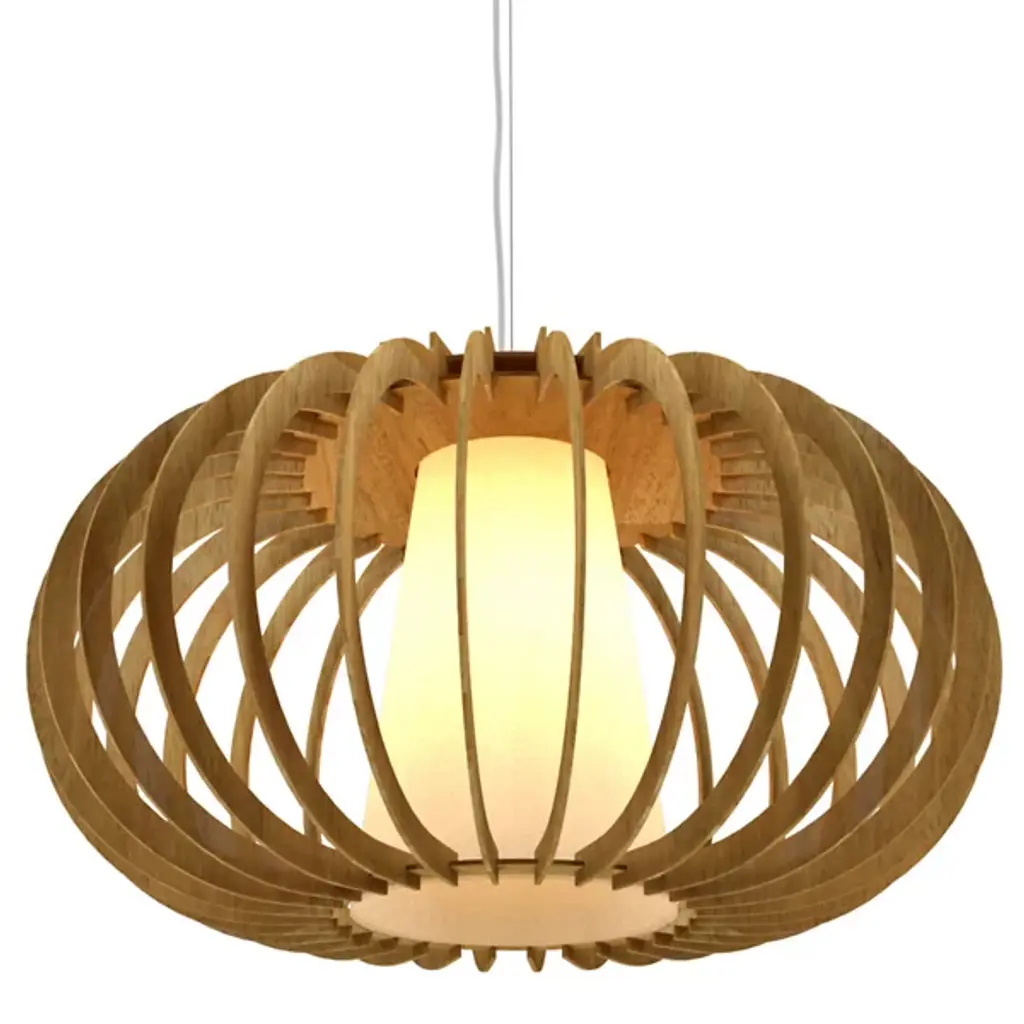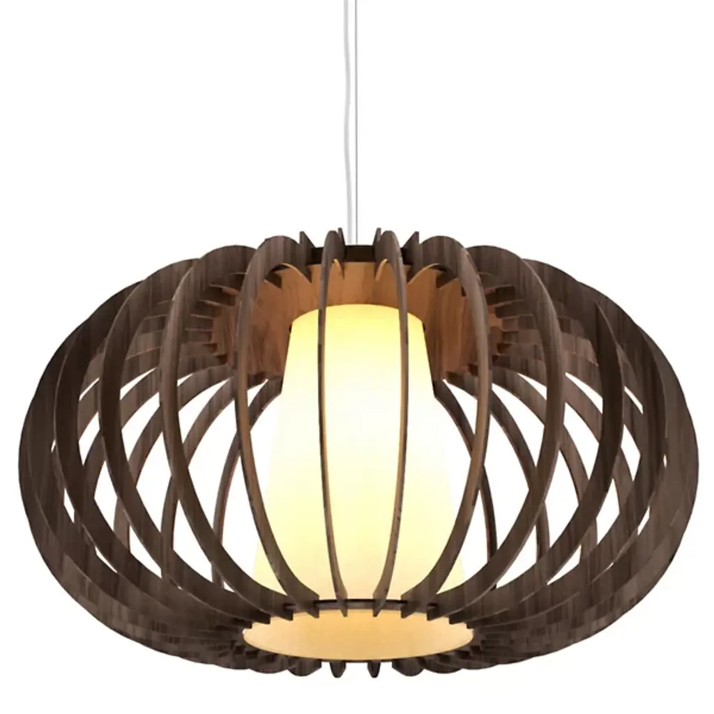 The Stecche Di Legno 1489 Pendant from Accord Lighting offers a simple yet stylish lighting solution with a modern rustic appeal. Crafted from MDF with a natural wood veneer finish, it features thin wooden slats that gently curve outward, forming a rounded frame around a linen shade. This pendant provides soft, diffused illumination, creating a warm and inviting atmosphere. Its clean design and natural materials make it a versatile addition to contemporary and classic interiors.