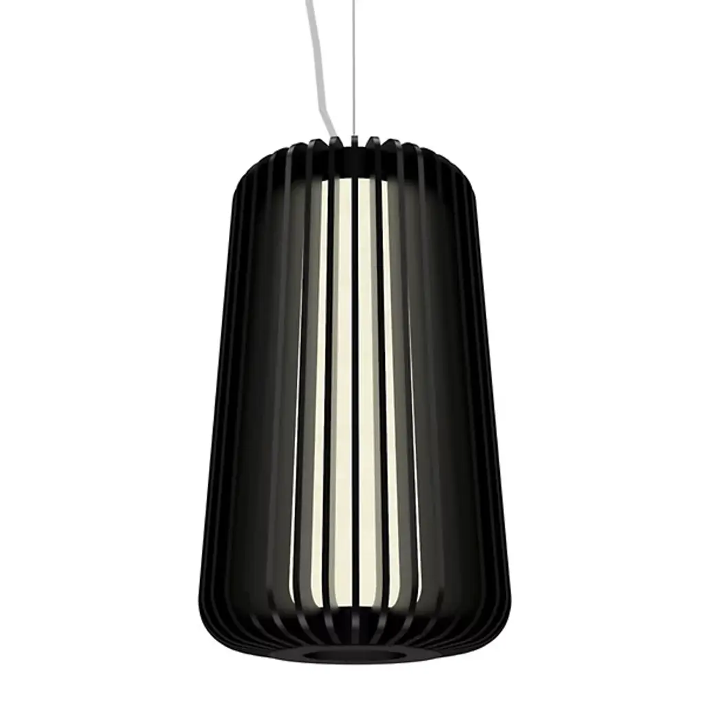 The Stecche Di Legno LED Pendant is a stylish piece from Bruno Diego Felippe, designing for Studio Accord and Accord Lighting. A sloping cylindrical shade is composed of metallic slats that are set uniformly around the perimeter. Integrated and energy-efficient LED illumination flows through them for a visually striking effect. The pendant hangs from wire that attaches to a canopy above. It’s an optimal lighting option for any interior as well as damp outdoor locales covered from the elements.