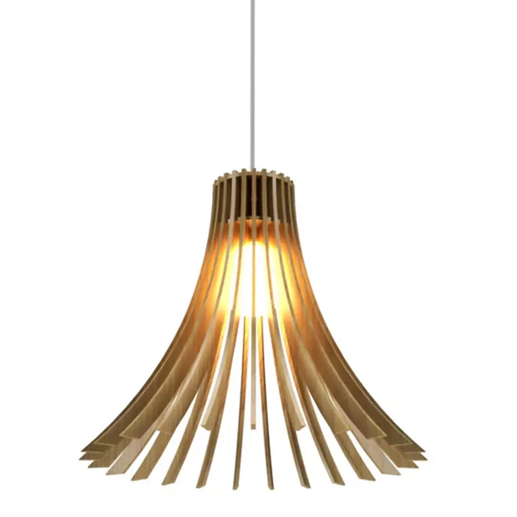 The Stecche di Legno Pendant from Accord Lighting uses gracefully curved wooden strips that flow downward in a dynamic arrangement. Brazilian craftsmen shape each wooden component by hand, creating fluid lines that guide light through deliberate spaces. The natural wood construction reveals authentic grain patterns that complement the light's glow. Hand-finished surfaces and precise engineering ensure lasting durability. Every detail reflects generations of woodworking expertise, from carefully calculated angles to the balanced distribution of light. This pendant illustrates Accord's mastery of lighting design.