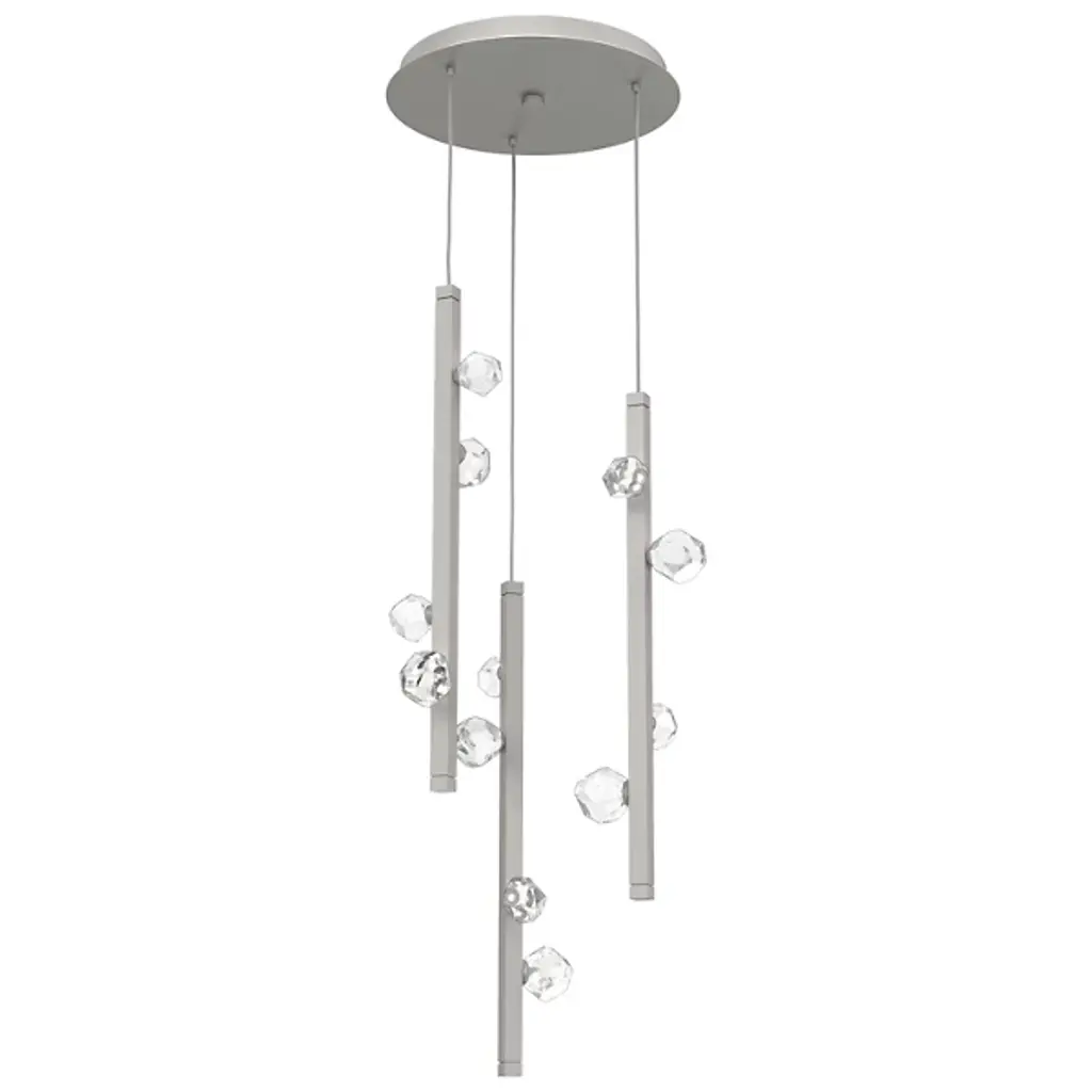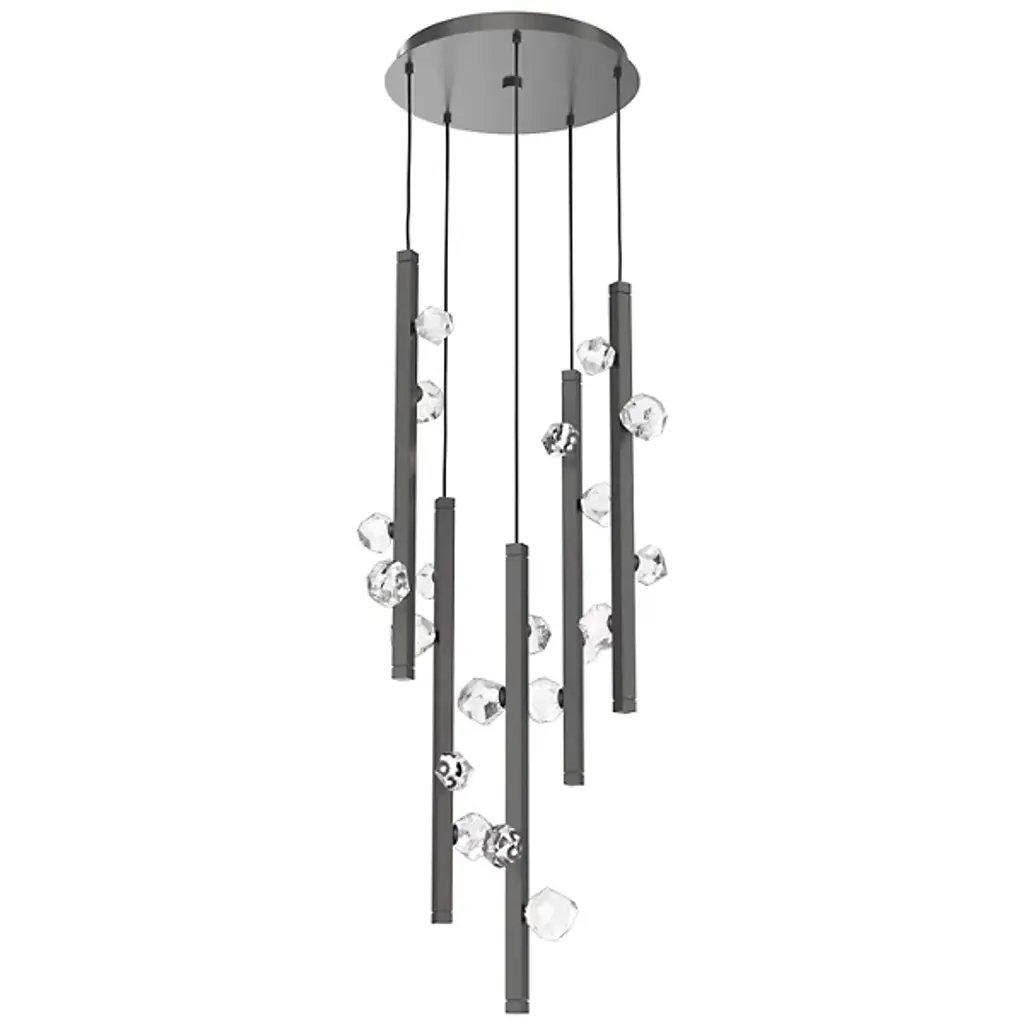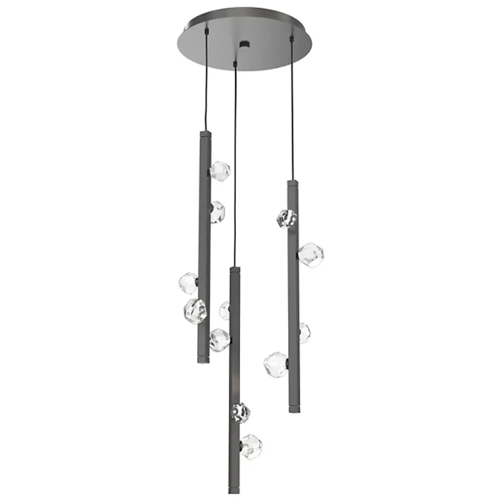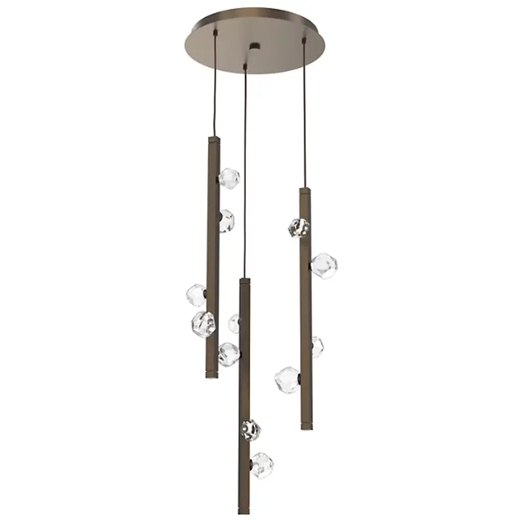 Bring style to your home décor with the unique blend of industrial edge and dazzling glass from the Stella LED Multi-Light Pendant by Hammerton Studio. This bold and modern fixture features a circular metal canopy that sends a series of slender cords down to suspend vertical metal bars at staggered heights. Handcrafted cast zircon glass shades adorn each piece, emitting a warm and radiant glow as its integrated LEDs create an inviting ambiance.