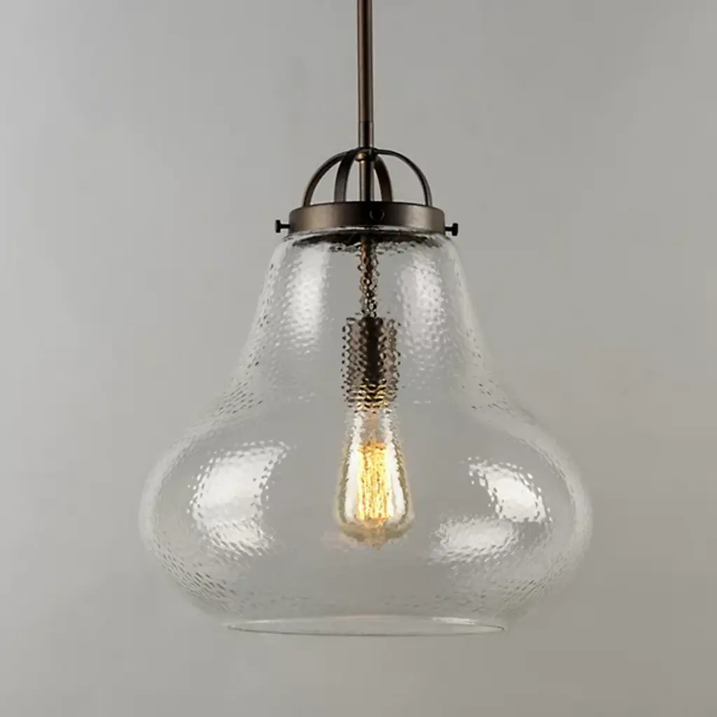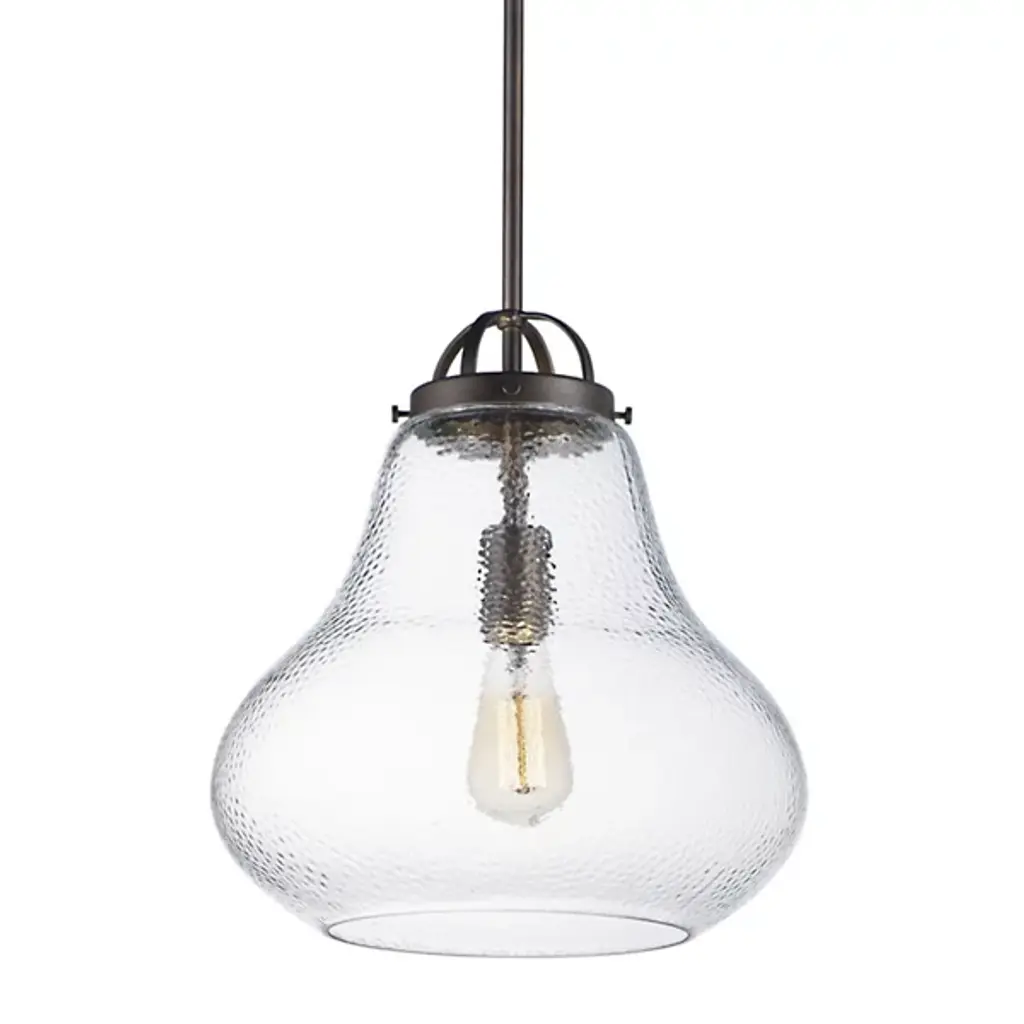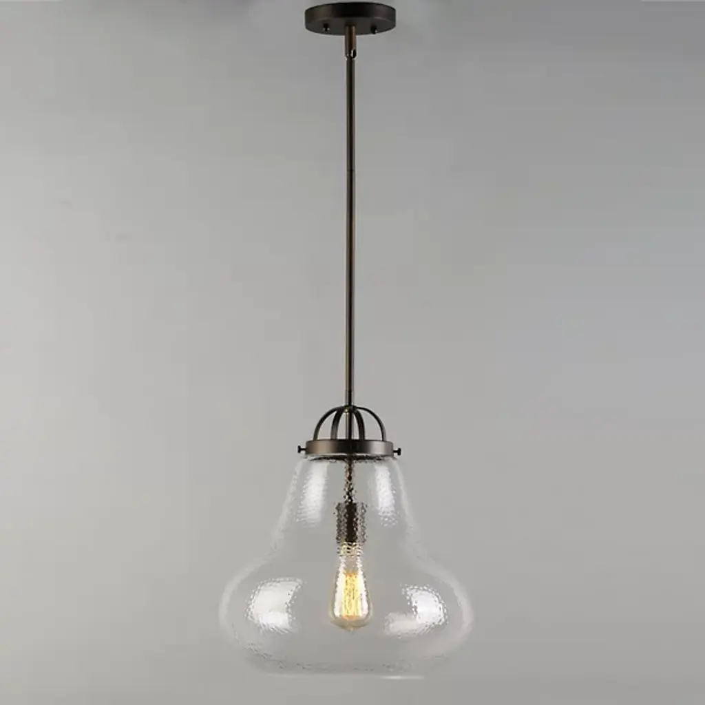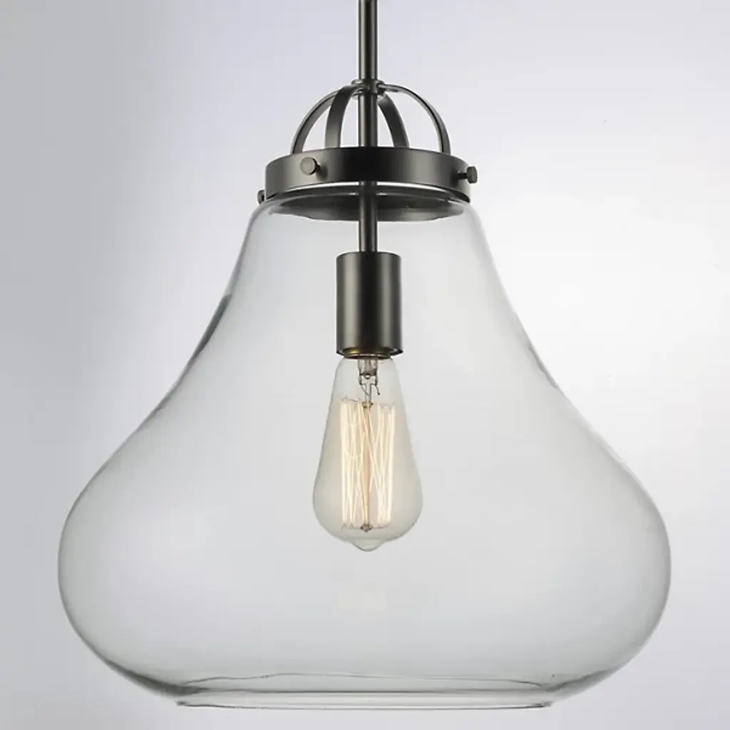 Stylish lighting for busy spaces. The Stella Pendant by Maxim Lighting is a chic choice for task or ambient illumination. Its dimmer compatibility allows you to create a soft glow when entertaining or relaxing, or crank up the brightness when prepping meals. A shapely shade crafted from clear glass lights the room in every direction and the pendant is height-adjustable, so you can design staggered clusters or evenly aligned rows.