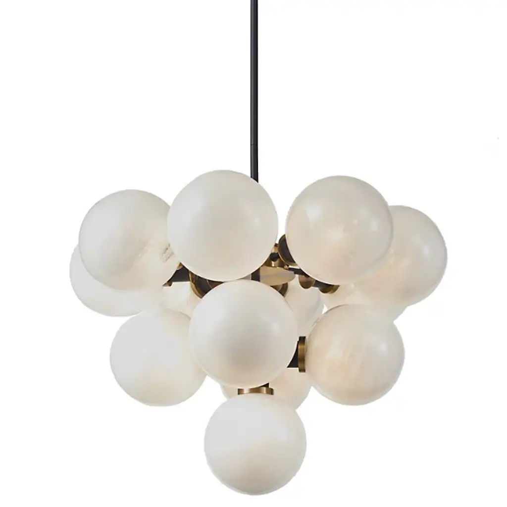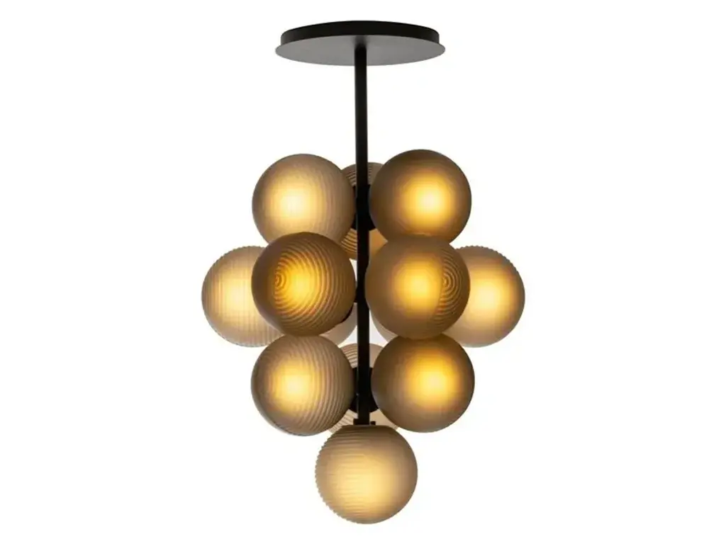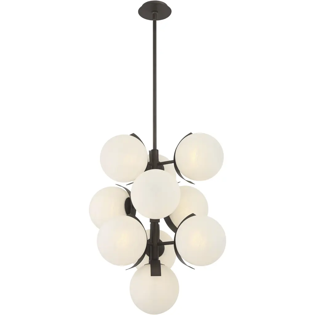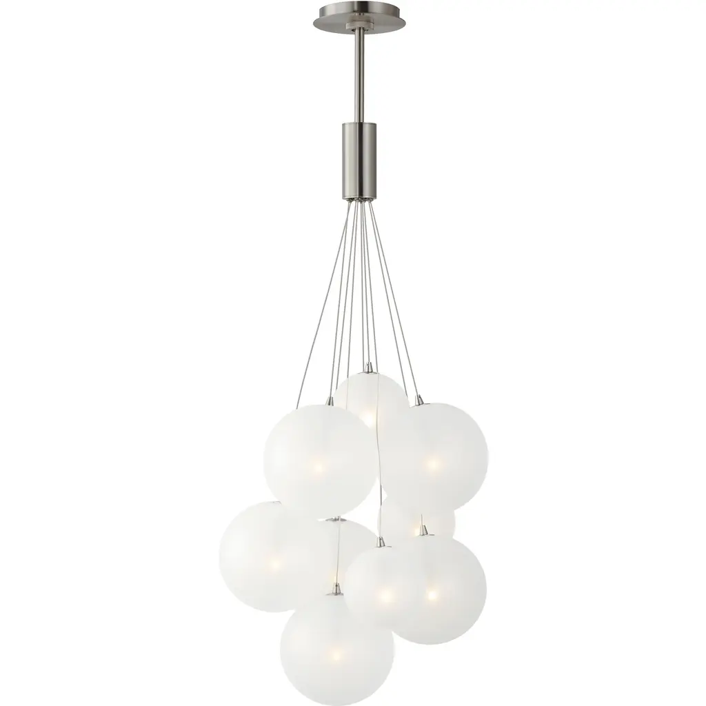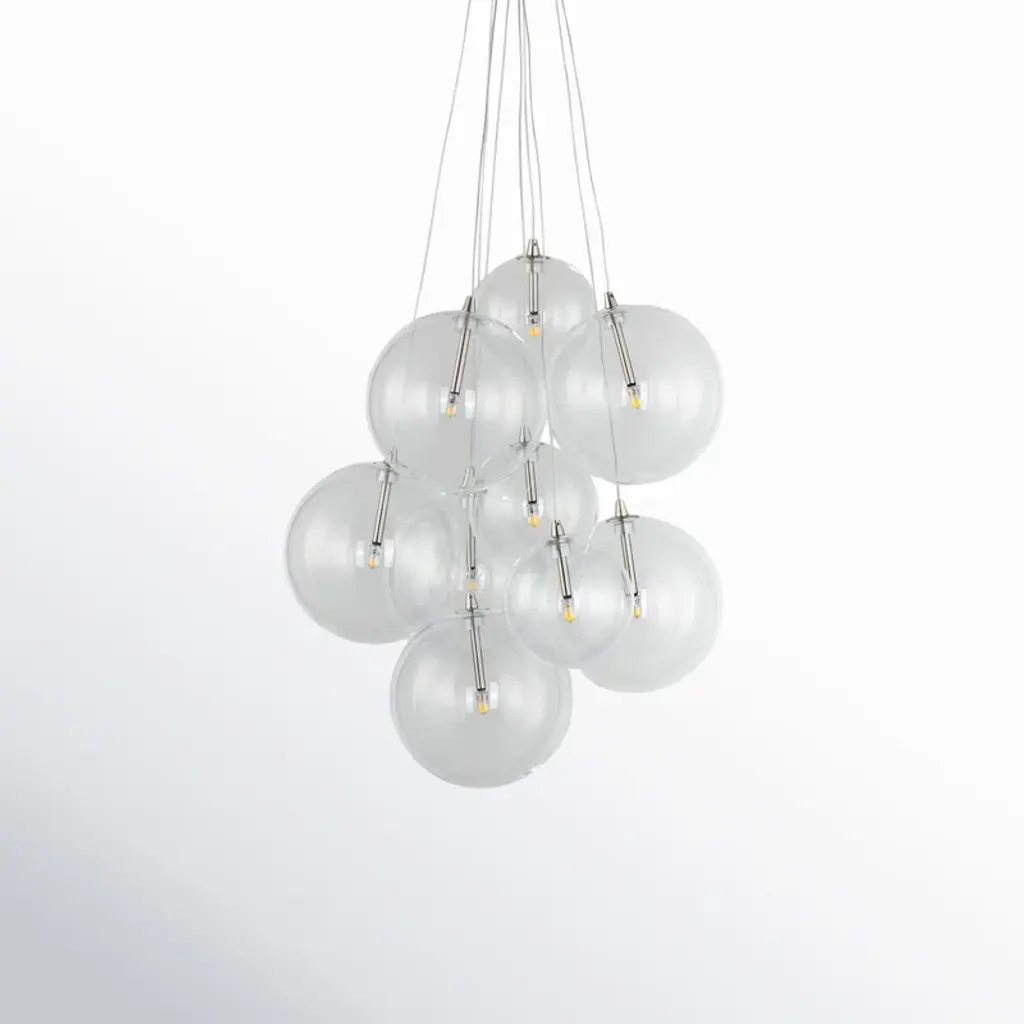 Adding to a growing galaxy of illumination, the Stellar Grape Pendant lamp appears as if a constellation of stars has fallen to earth. A frosted acetate finish, delicately adding just the right glow to your interior, softens each textured blown glass globe. Brought together by a black powder coated steel frame, this suspended family will leave you star gazing.Each piece is created from handblown glass with a frosted acetate finish to one side. Bubbles, streaks and other variations in size and colour are part of the production process. The stand and base are produced from black powder coated steel.