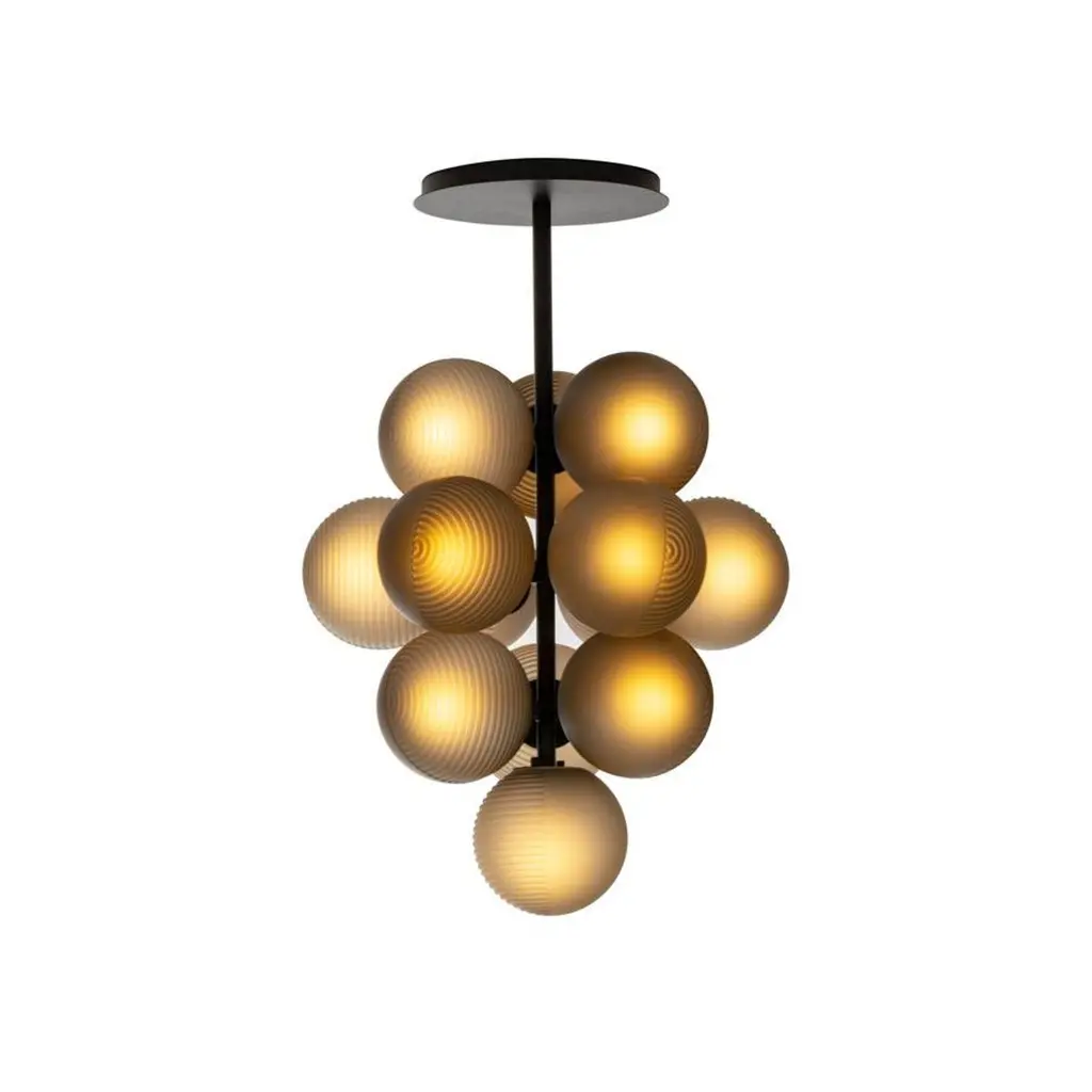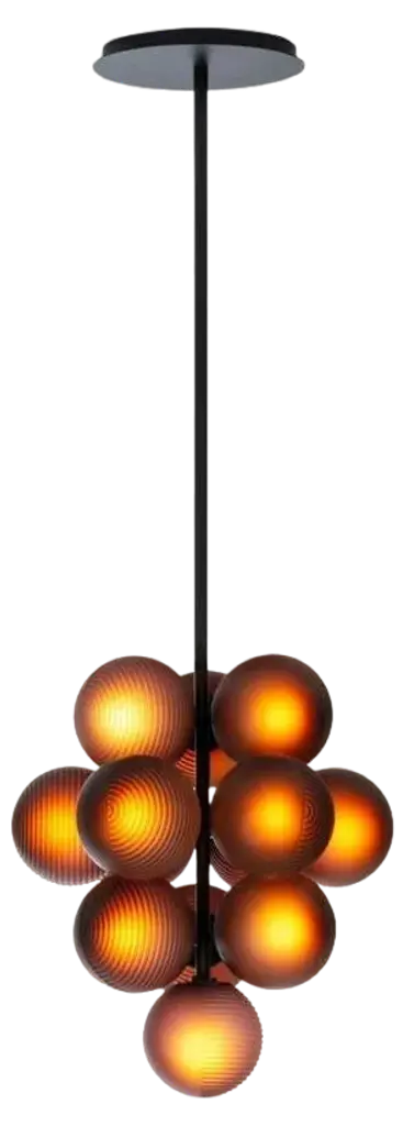 Stellar grape pendant small smoky grey acetato champagner by PulpoDimensions: D61 x H86 cm.Materials: handblown glass coloured, powder coated steel.Also available in different finishes. Height can be customised. Raised up above the clouds on a simple black powder coated steel base, the stellar floor lamp will shine across your interior universe. A grouping of star-like spheres mixes frosted acetate illumination with a textured ripple. These handblown glass spheres offer the perfect mix of elegance and mystery for the rest of your interior to orbit.All our lamps can be wired according to each country. If sold to the USA it will be wired for the USA for instance.Pulpo is a design editor for high-end products in the home sector.Design is our passion. Art is our engine. We are fascinated by the craft of the ceramic and glassblowing workshops and are guided by the rough aesthetics of these unique pieces.Pulpo’s philosophy goes back to the idea of ??the “carte blanche”. Our designers and artists develop their designs freely and experimentally. A variety of materials and a weakness for structures are our strengths.The headquarters of pulpo is in Weil am Rhein, near the Swiss border. Consisting of the creative and sales department, warehouse and logistics, this is the think tank for our artists and designers. pulpo’s dealer network extends far beyond Weil am Rhein – from Iceland and Dubai to Australia.Pulpo is movement – is possibility – is passion.In 2006, pulpo was founded by Ursula and Patrick L’hoste as a design brand at the interface between shape and material. pulpo’s conception is to edit lighting, furniture and accessoires on editor’s choice. The company’s focus is to conduct up-and-coming designers and selected manufacturers, using the nature of material’s to form the score. Materials such as ceramics, stone and especially glass, which is pulpo’s primary focus since 2013.
