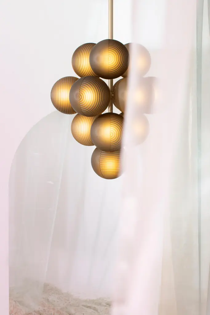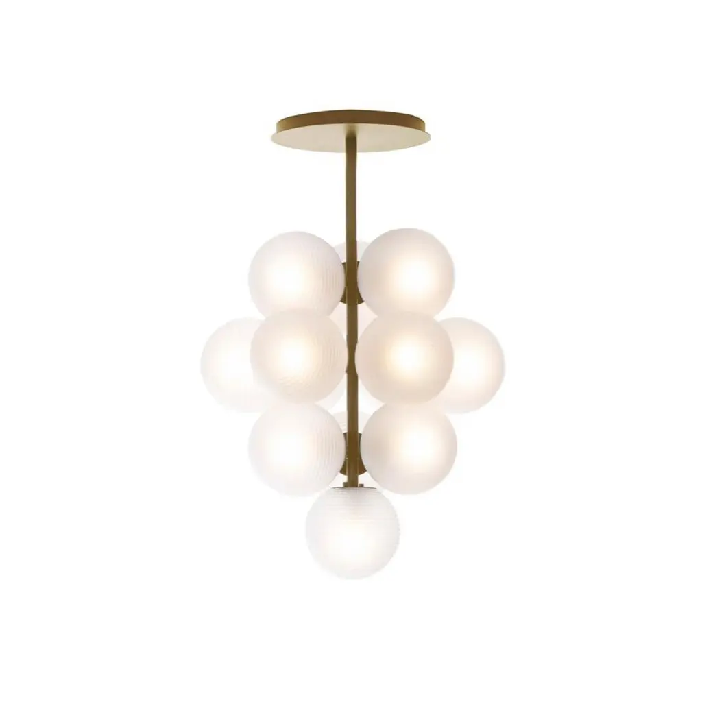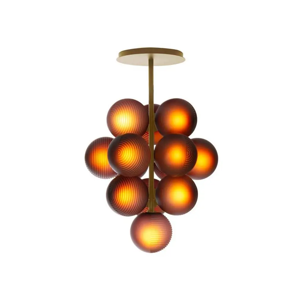 Stellar grape pendant small transparent acetato black by Pulpo.Dimensions: D61 x H86 cm.Materials: handblown glass coloured ,powder coated steel.Also available in different finishes. Height can be customised. Raised up above the clouds on a simple black powder coated steel base, the stellar floor lamp will shine across your interior universe. A grouping of star-like spheres mixes frosted acetate illumination with a textured ripple. These handblown glass spheres offer the perfect mix of elegance and mystery for the rest of your interior to orbit.All our lamps can be wired according to each country. If sold to the USA it will be wired for the USA for instance.Pulpo is a design editor for high-end products in the home sector.Design is our passion. Art is our engine. We are fascinated by the craft of the ceramic and glassblowing workshops and are guided by the rough aesthetics of these unique pieces.Pulpo’s philosophy goes back to the idea of ??the “carte blanche”. Our designers and artists develop their designs freely and experimentally. A variety of materials and a weakness for structures are our strengths.The headquarters of pulpo is in Weil am Rhein, near the Swiss border. Consisting of the creative and sales department, warehouse and logistics, this is the think tank for our artists and designers. pulpo’s dealer network extends far beyond Weil am Rhein – from Iceland and Dubai to Australia.Pulpo is movement – is possibility – is passion.In 2006, pulpo was founded by Ursula and Patrick L’hoste as a design brand at the interface between shape and material. pulpo’s conception is to edit lighting, furniture and accessoires on editor’s choice. The company’s focus is to conduct up-and-coming designers and selected manufacturers, using the nature of material’s to form the score. Materials such as ceramics, stone and especially glass, which is pulpo’s primary focus since 2013.