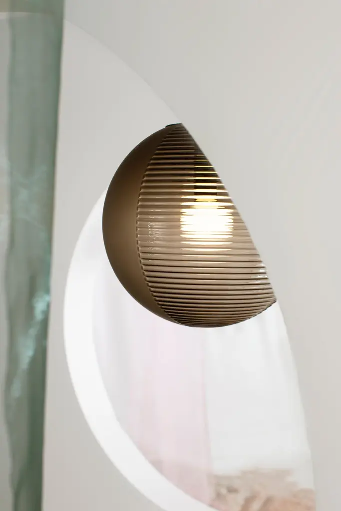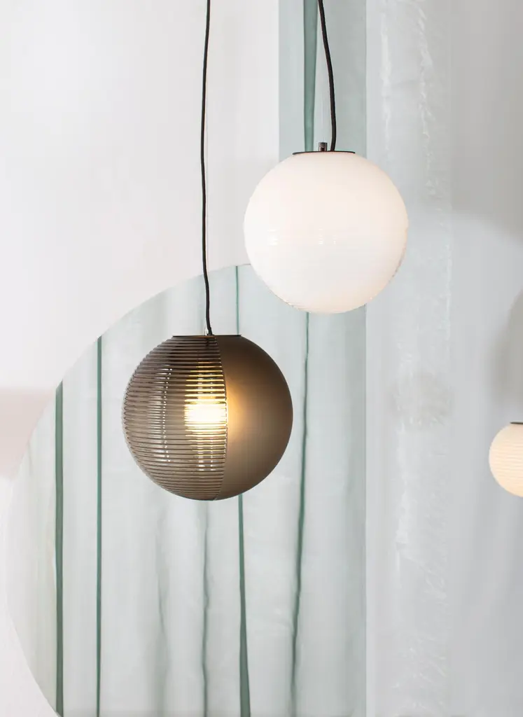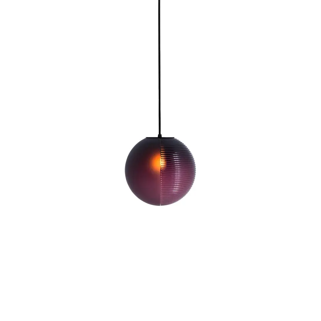 Stellar mini transparent acetato pendant by Pulpo.Dimensions: D18 x H320 cm.Materials: handblown glass coloured, stainless steel wire, textile cable.Also available in different finishes: aubergine acetato aubergine, smoky grey acetato smoky grey, transparent acetato transparent, white acetato white. Sending hazy transparencies and rippled waves across your interior universe comes the stellar range of pendant lights. Inspired by the intergalactic, Sebastian Herkner has used repetition in pattern and geometric sensibility to create a collection bordering on the unidentified. Like seeing the night skies brightest through a telescope, stellar’s soft glow requires closer inspection to see its detailed surface. Appearing like deep ravines on the moons surface, its handblown glass form reveals a semi-sphere full of curved ridges.Frosted acetate is added to its smooth opposite, creating a warming glow.All our lamps can be wired according to each country. If sold to the USA it will be wired for the USA for instance.Pulpo is a design editor for high-end products in the home sector.Design is our passion. Art is our engine. We are fascinated by the craft of the ceramic and glassblowing workshops and are guided by the rough aesthetics of these unique pieces.Pulpo’s philosophy goes back to the idea of ??the “carte blanche”. Our designers and artists develop their designs freely and experimentally. A variety of materials and a weakness for structures are our strengths.The headquarters of pulpo is in Weil am Rhein, near the Swiss border. Consisting of the creative and sales department, warehouse and logistics, this is the think tank for our artists and designers. pulpo’s dealer network extends far beyond Weil am Rhein – from Iceland and Dubai to Australia.Pulpo is movement – is possibility – is passion.In 2006, pulpo was founded by Ursula and Patrick L’hoste as a design brand at the interface between shape and material. pulpo’s conception is to edit lighting, furniture and accessoires on editor’s choice. The company’s focus is to conduct up-and-coming designers and selected manufacturers, using the nature of material’s to form the score. Materials such as ceramics, stone and especially glass, which is pulpo’s primary focus since 2013.