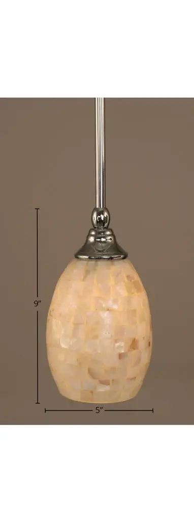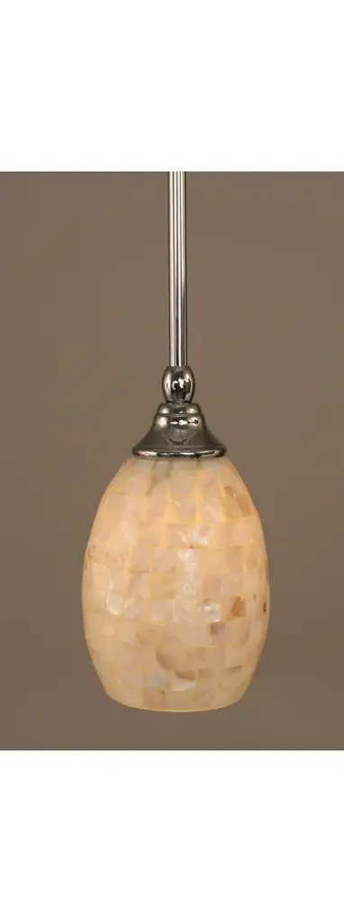 Stem 1-Light Pendant With Hang Straight Swivel, Chrome/ivory Glaze Seashell