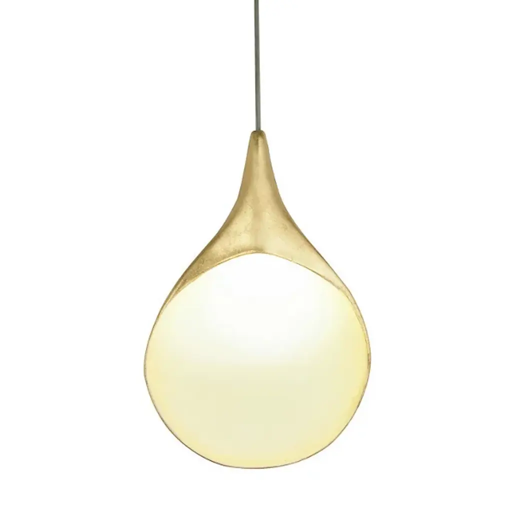 Simple and chic, reminiscent of a smooth pebble or shell, the Stillabunt Pendant Light from Oggetti is a simple, yet eye-catching luminary ready to brighten up any corner of your home. Made by the most skilled Italian craftsmen entirely in ceramic, soft light fills the off-white diffuser, the sides and back are beautifully covered with real gold or silver leaf for an elevated touch of visual appeal. Hung on its own or clustered in groups for a mesmerizing effect, this pendant looks great along a kitchen island countertop or accenting a bedroom or living space. Highlights