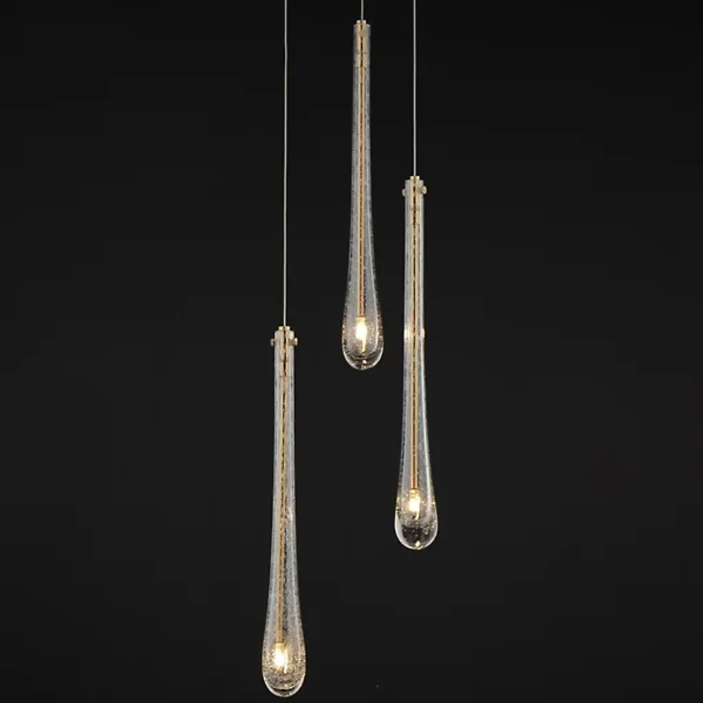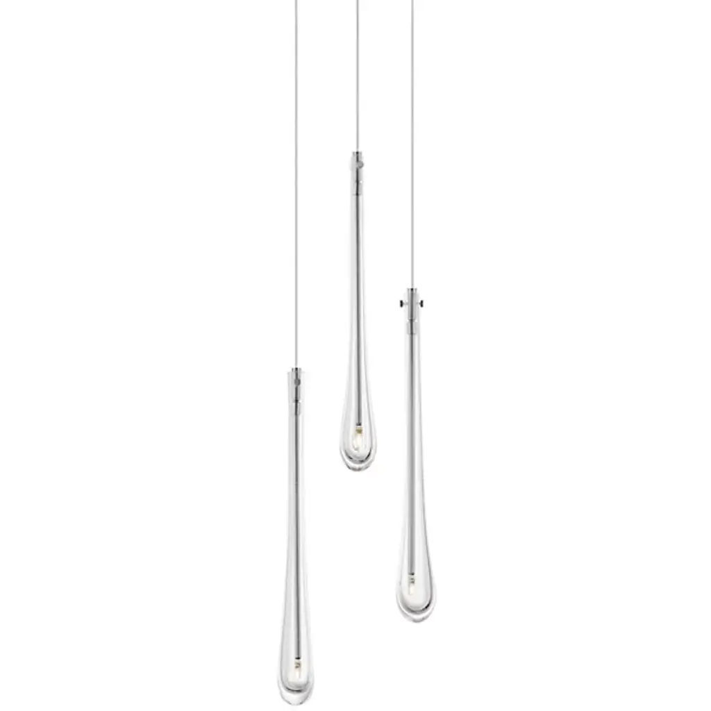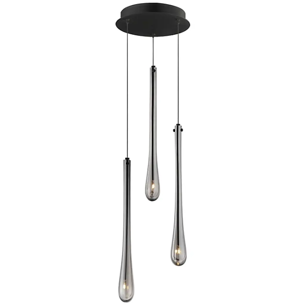 The Stillo 3-Light Pendant from ET2 Lighting showcases a classic teardrop glass shade that is elevated using substantially dense glass that is hand blown in elongated forms and curated into various color combinations. Suspended within the long, slender glass is a similarly long and slender socket to illuminate an energy-efficient LED G4 lamp at the base of the glass. The slender tube running within the glass also supports the glass with elegantly flat thumb screws in coordinating finishes.