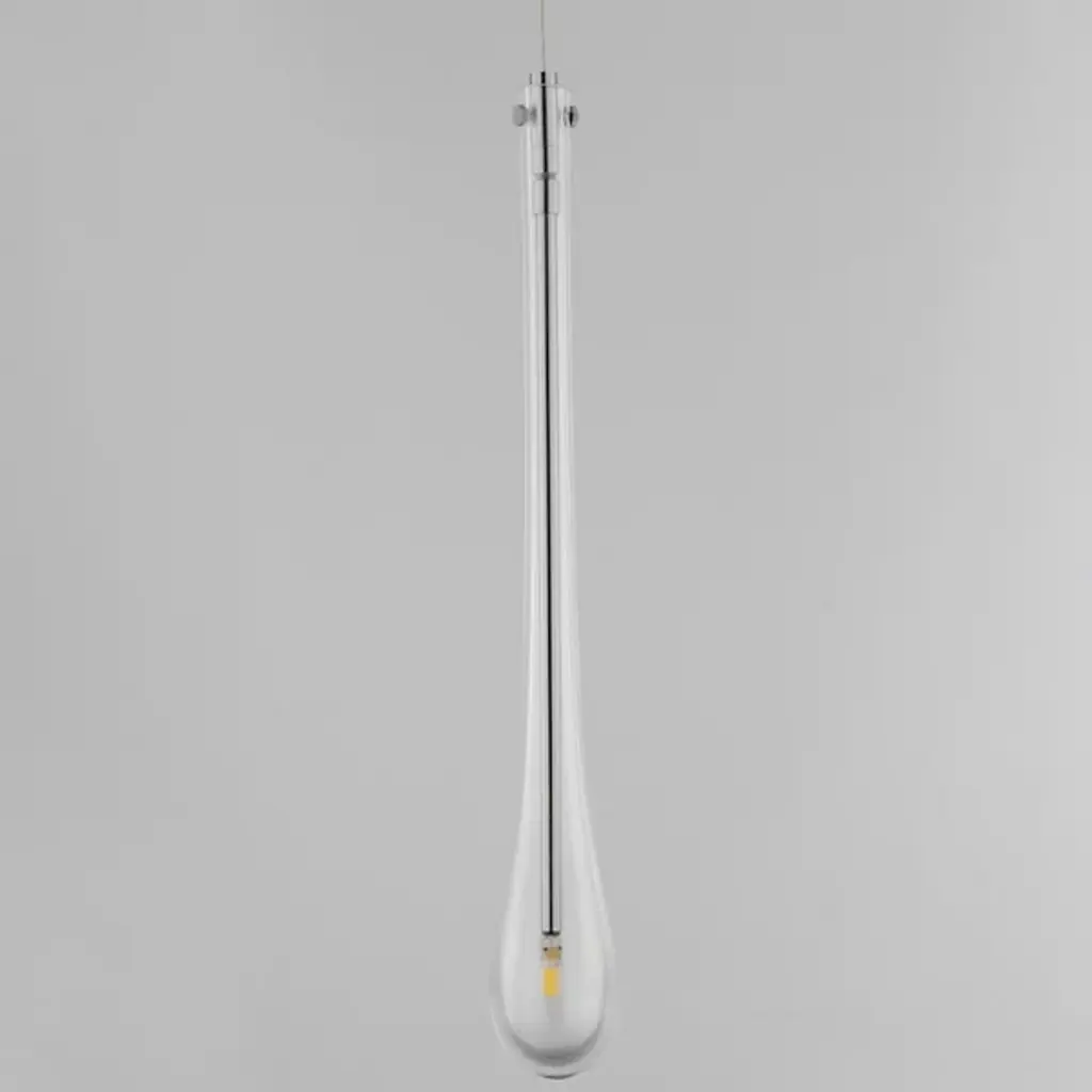 The Stillo Mini Pendant from ET2 Lighting showcases a classic teardrop glass shade that is elevated using substantially dense glass that is hand blown in elongated forms and curated into various color combinations. Suspended within the long, slender glass is a similarly long and slender socket to illuminate an energy-efficient LED G4 lamp at the base of the glass. The slender tube running within the glass also supports the glass with elegantly flat thumb screws in coordinating finishes.