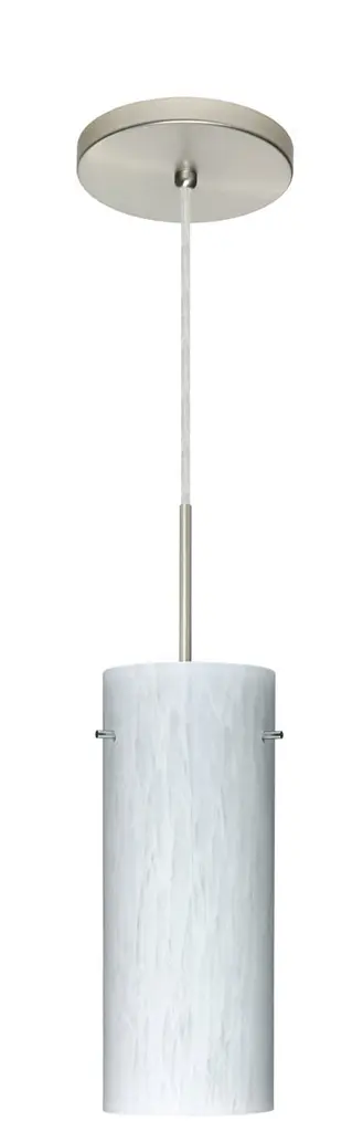 Stilo 10 is a classic open-ended cylinder of handcrafted glass, a shape that will stand the test of time. Our Carrera glass is a classic yet modern décor that gives off a soft white light. Clear molten glass is rolled in alabaster powder like frit, and then blown into shape with a semi-clear frosted white inner finish. This décor is created by rolling molten glass in small bits of white called frit. The smooth satin finish on the clear outer layer is a result of an extensive etching process. This blown glass is handcrafted by a skilled artisan, utilizing century-old techniques passed down from generation to generation. Each piece of this décor has its own artistic nature that can be individually appreciated. The cord pendant fixture is equipped with a 10' SVT cordset and an low profile flat monopoint canopy. These stylish and functional luminaries are offered in a beautiful Satin Nickel finish.