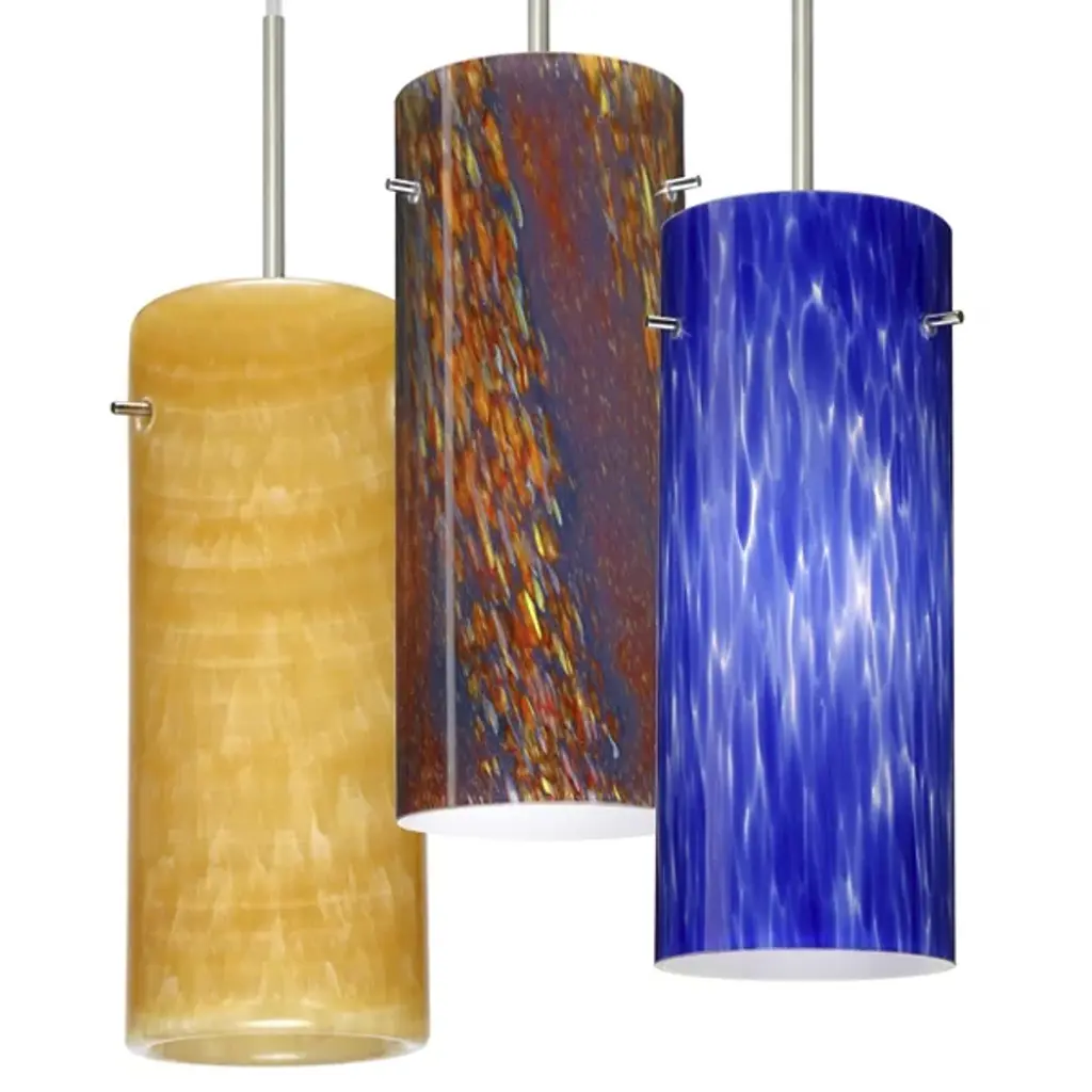 In modern interiors, add some vibrant color and style with Stilo. The Besa Lighting Stilo 10 Pendant features a classic open-top cylinder of hand-crafted glass. This ten inch long shade is available in a wide range of textural art glass or solid matte glass options. Customize Stilo further with a choice of metal finish and canopy shape.