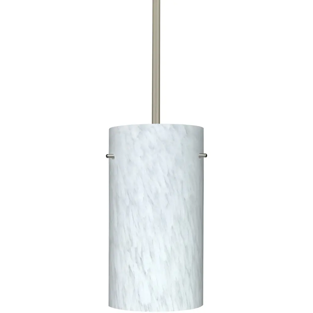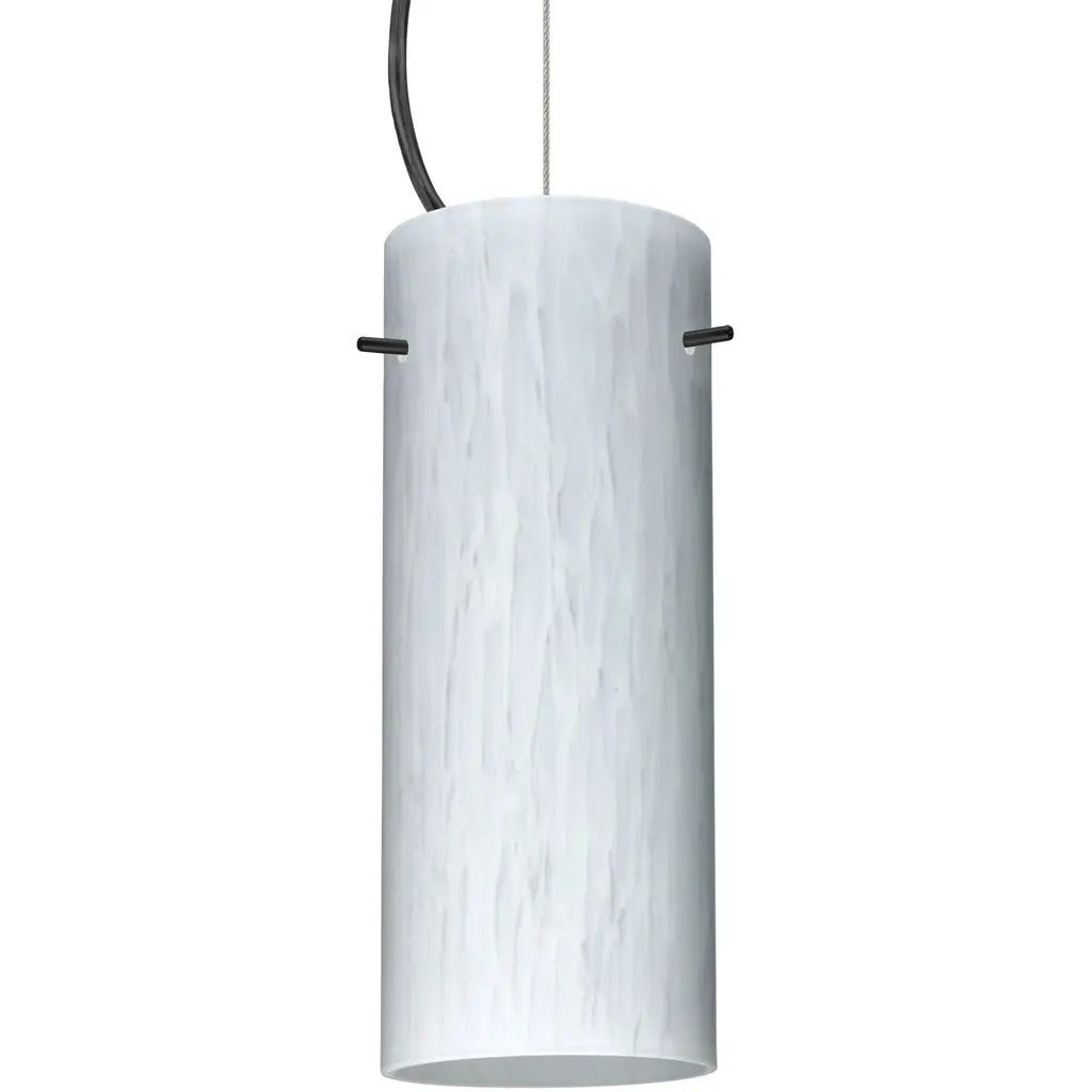 Stilo 12 is a classic open-ended cylinder of handcrafted glass, a shape that will stand the test of time. Our Carrera glass is a classic yet modern décor that gives off a soft white light. Clear molten glass is rolled in alabaster powder like frit, and then blown into shape with a semi-clear frosted white inner finish. This décor is created by rolling molten glass in small bits of white called frit. The smooth satin finish on the clear outer layer is a result of an extensive etching process. This blown glass is handcrafted by a skilled artisan, utilizing century-old techniques passed down from generation to generation. Each piece of this décor has its own artistic nature that can be individually appreciated. The cable pendant fixture is equipped with a 10' silver aircraft cable and AWM cordset, and a dome monopoint canopy. These stylish and functional luminaries are offered in a beautiful Black finish.