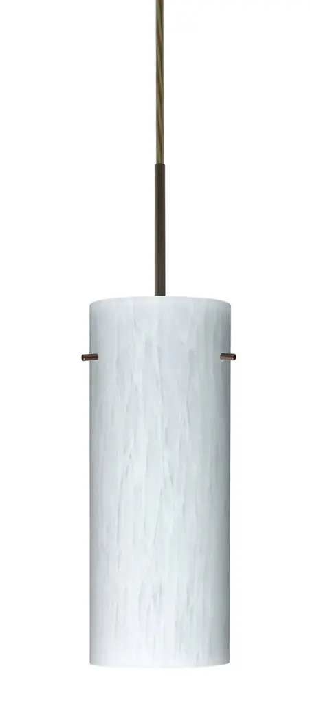 Stilo 16 is a classic open-ended cylinder of handcrafted glass, a shape that will stand the test of time. Our Carrera glass is a classic yet modern décor that gives off a soft white light. Clear molten glass is rolled in alabaster powder like frit, and then blown into shape with a semi-clear frosted white inner finish. This décor is created by rolling molten glass in small bits of white called frit. The smooth satin finish on the clear outer layer is a result of an extensive etching process. This blown glass is handcrafted by a skilled artisan, utilizing century-old techniques passed down from generation to generation. Each piece of this décor has its own artistic nature that can be individually appreciated. The stem pendant fixture is equipped with an adjustable telescoping section, 4 connectable stem sections (3", 6", 12", and 18") and low Profile flat monopoint canopy. These stylish and functional luminaries are offered in a beautiful Satin Nickel finish.