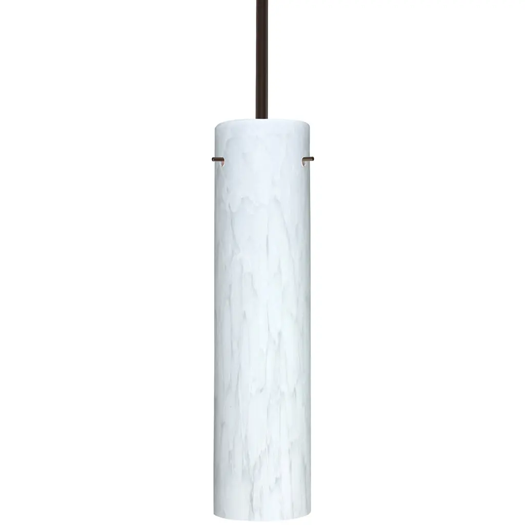 Stilo 18 is a classic open-ended cylinder of handcrafted glass, a shape that will stand the test of time. Our Carrera glass is a classic yet modern décor that gives off a soft white light. Clear molten glass is rolled in alabaster powder like frit, and then blown into shape with a semi-clear frosted white inner finish. This décor is created by rolling molten glass in small bits of white called frit. The smooth satin finish on the clear outer layer is a result of an extensive etching process. This blown glass is handcrafted by a skilled artisan, utilizing century-old techniques passed down from generation to generation. Each piece of this décor has its own artistic nature that can be individually appreciated. The cable pendant fixture is equipped with a 10' silver aircraft cable and AWM cordset, and a dome monopoint canopy. These stylish and functional luminaries are offered in a beautiful Black finish.