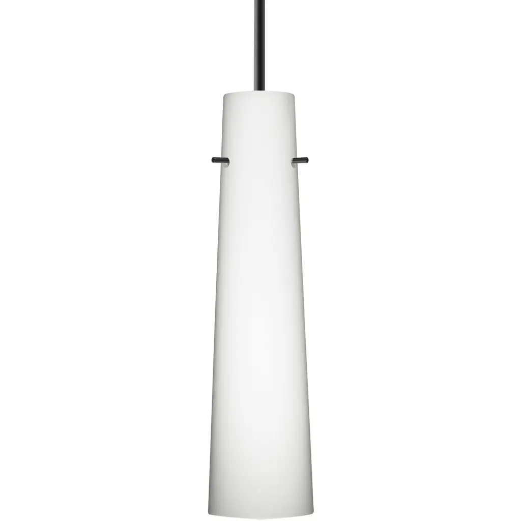 Copa is a timeless open cylinder of handcrafted glass, that demonstrates contemporary sensibilities. Our Opal glass is a soft white cased glass that can suit any classic or modern decor. Opal has a very tranquil glow that is pleasing in appearance. The smooth satin finish on the clear outer layer is a result of an extensive etching process. This blown glass is handcrafted by a skilled artisan, utilizing century-old techniques passed down from generation to generation. The stem pendant fixture is equipped with an adjustable telescoping section, 4 connectable stem sections (3", 6", 12", and 18") and low Profile flat monopoint canopy. These stylish and functional luminaries are offered in a beautiful Black finish.