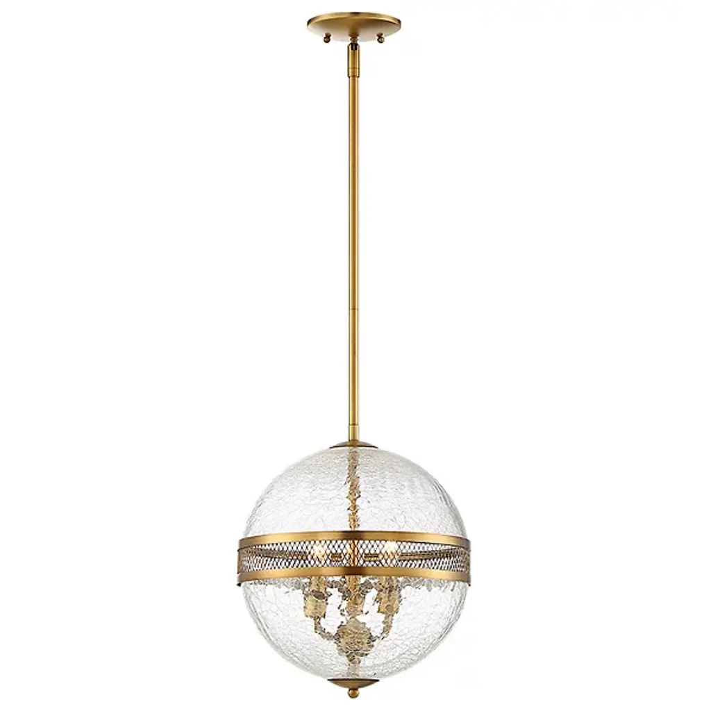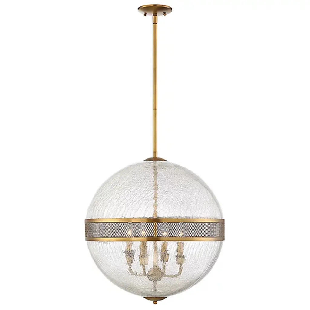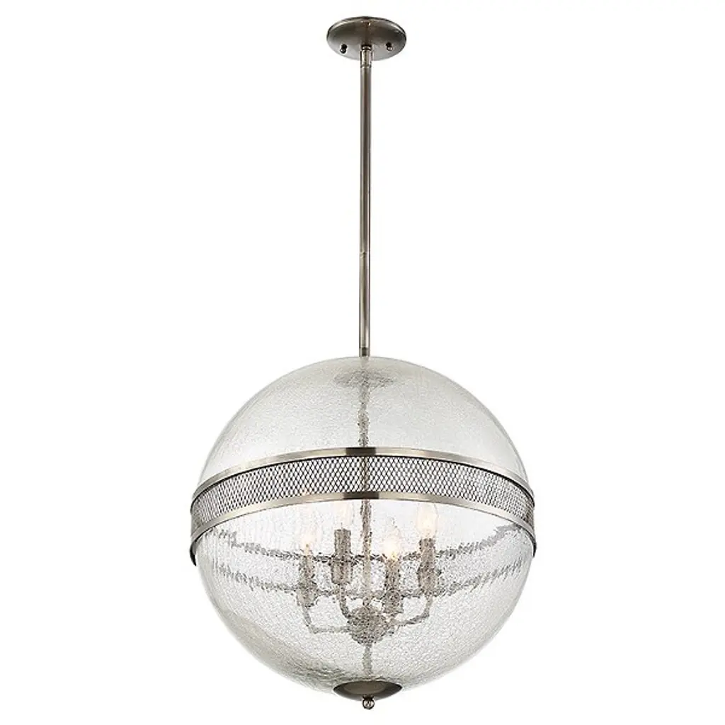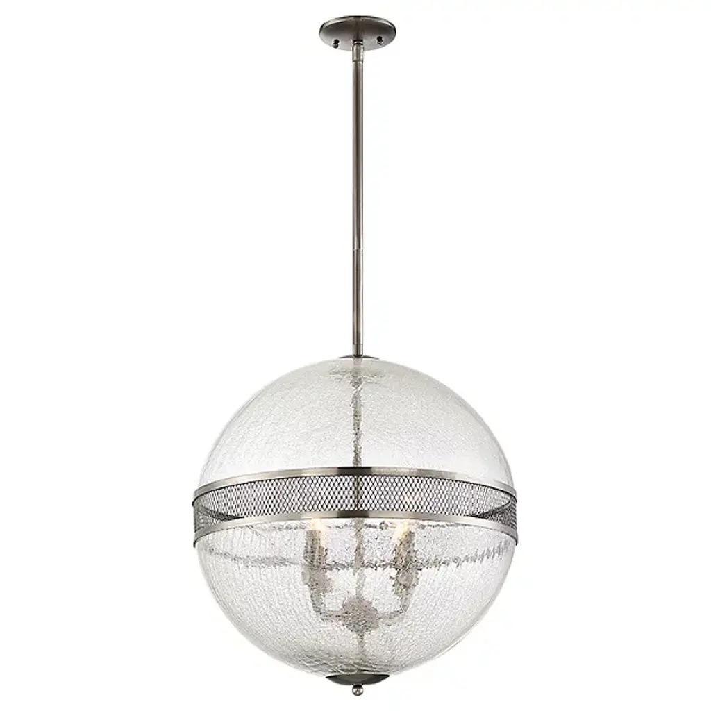 Decorate a dramatically different space with a Stirling Pendant from Savoy House. It's an eye-catching design with a crackled glass orb, mesh metal accents and a small ball finial to bring shine and texture to a décor story. With its boldly unique look and vintage appeal, this light fixture is a gorgeous finishing touch for a dream kitchen with transitional style.