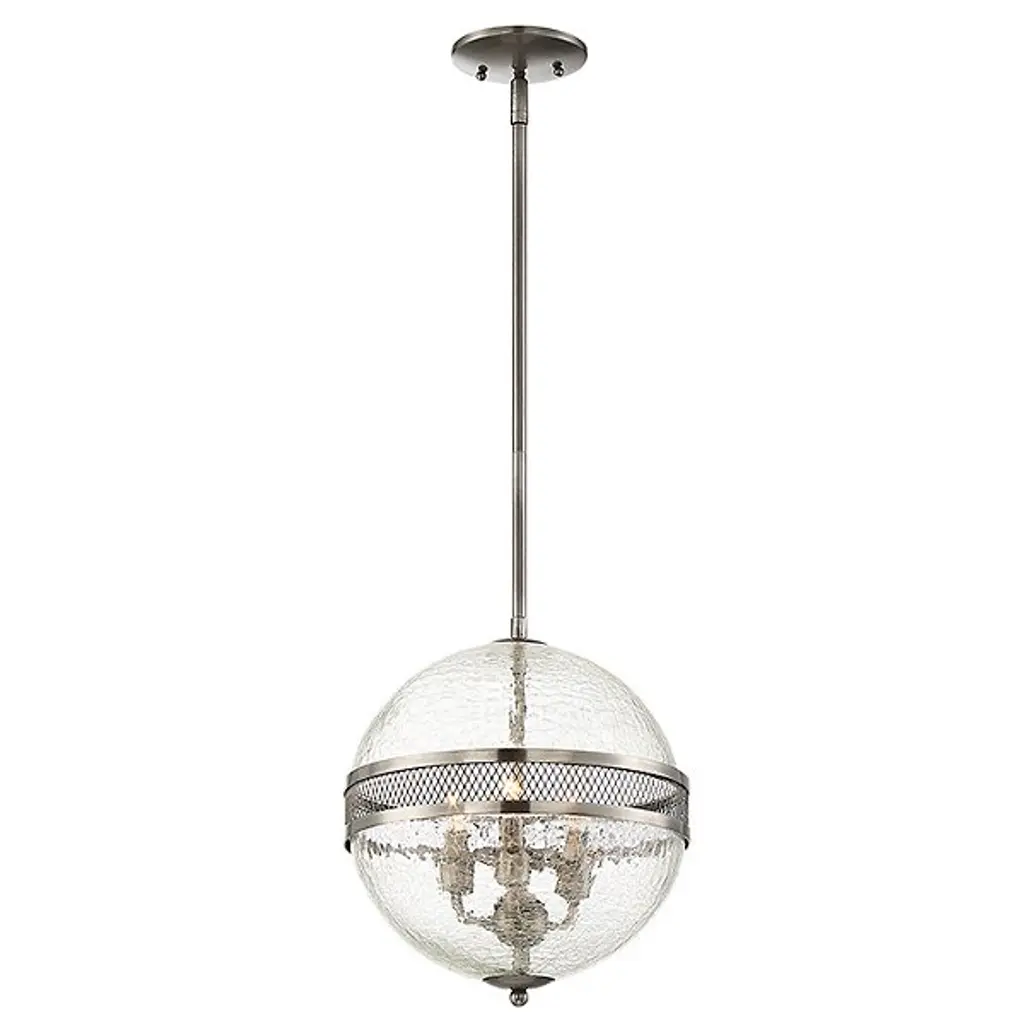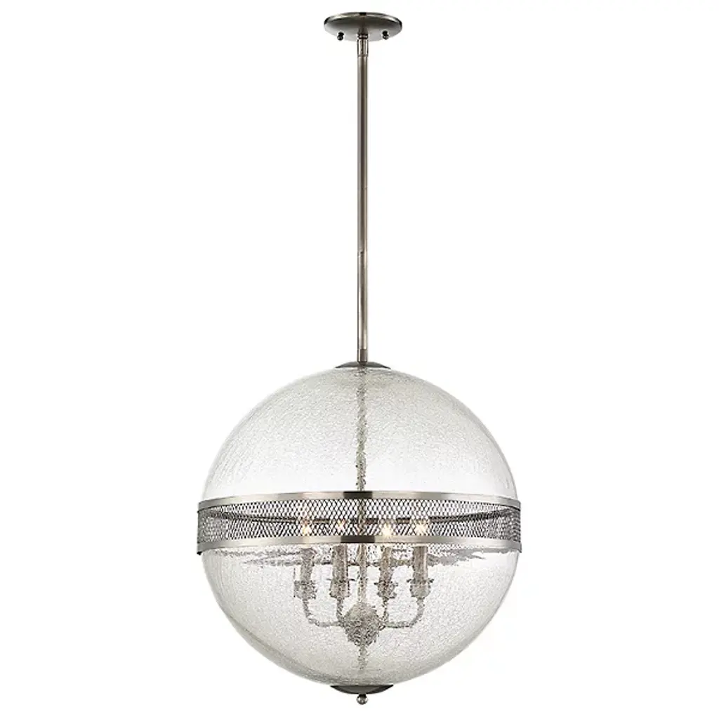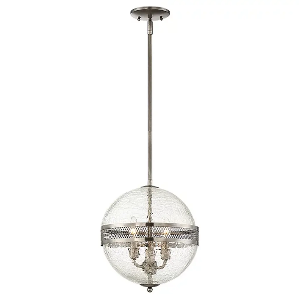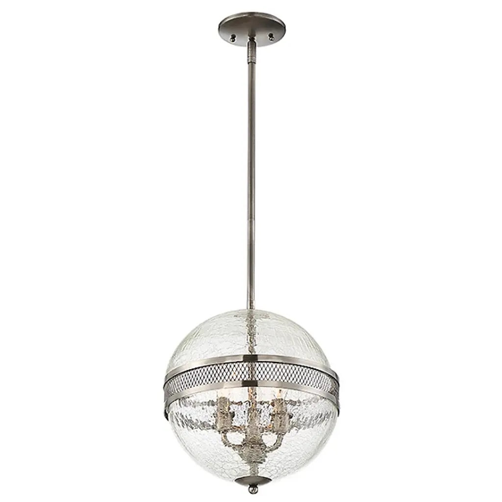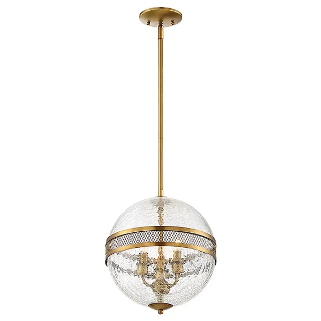 Decorate a dramatically different space with a Stirling Pendant from Savoy House. It's an eye-catching design with a crackled glass orb, mesh metal accents and a small ball finial to bring shine and texture to a décor story. With its boldly unique look and vintage appeal, this light fixture is a gorgeous finishing touch for a dream kitchen with transitional style.