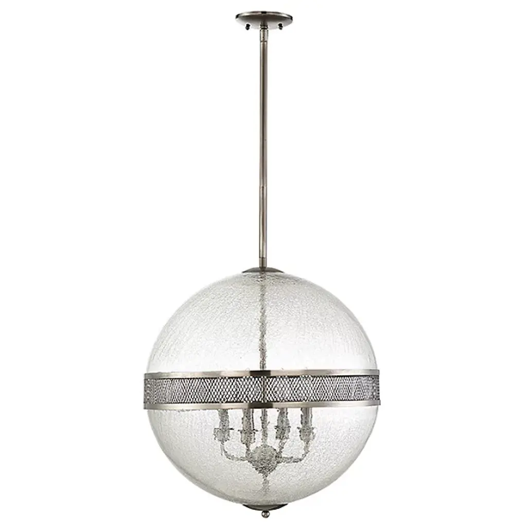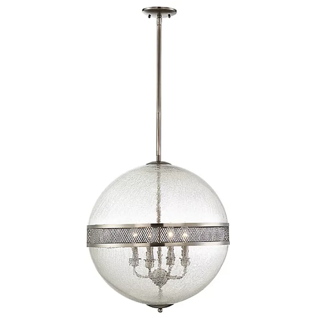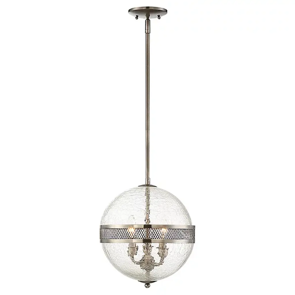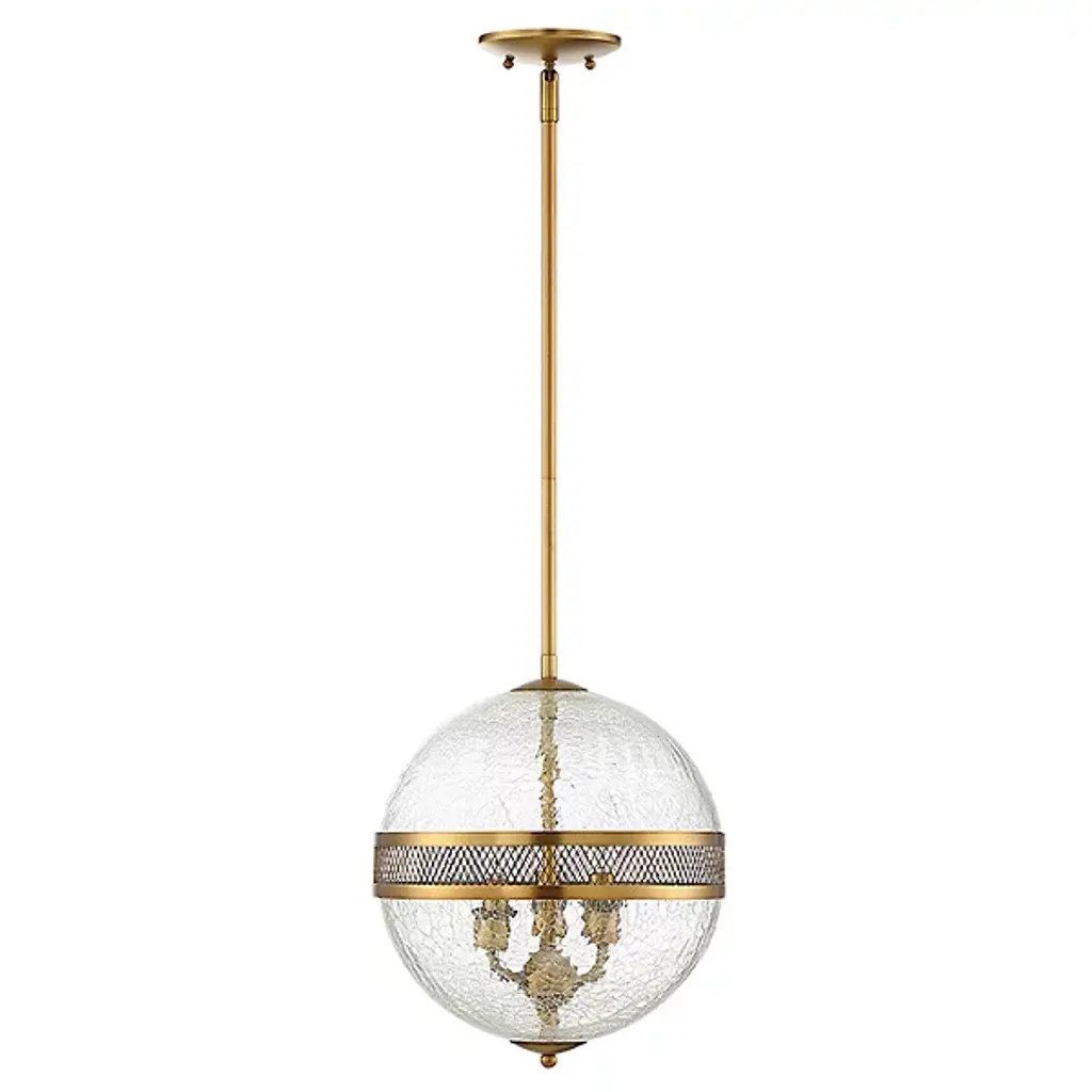 Decorate a dramatically different space with a Stirling Pendant from Savoy House. It's an eye-catching design with a crackled glass orb, mesh metal accents and a small ball finial to bring shine and texture to a décor story. With its boldly unique look and vintage appeal, this light fixture is a gorgeous finishing touch for a dream kitchen with transitional style.