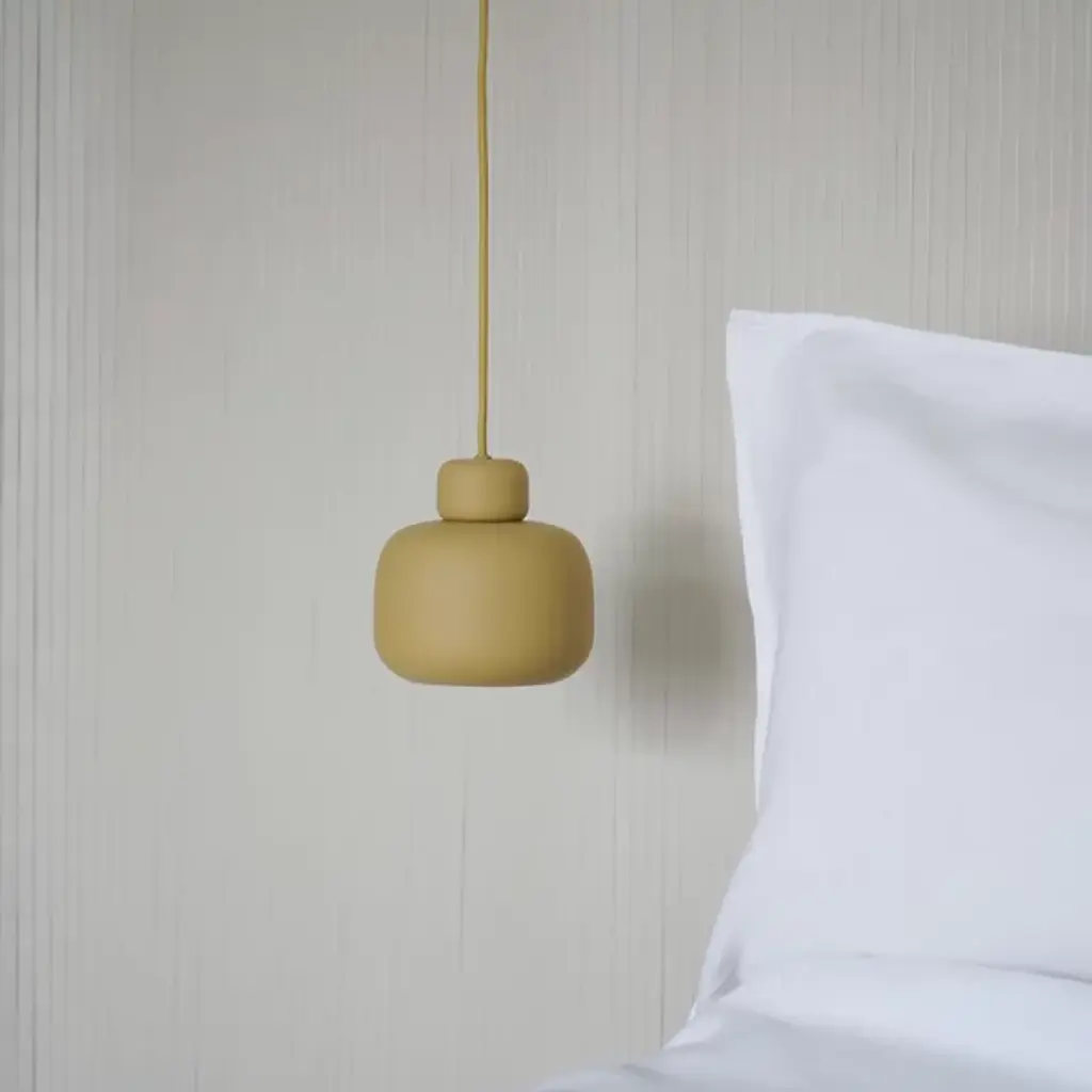 The Stone Mini Pendant from Woud is an artful piece, capturing the soothing sense of balance, creativity, and natural beauty of stacked beach stones. Danish designer Philip Bro approaches the piece with the idea that serious design can be stylish, playful, and unexpected. The pendant sets a high-style tone first with a slender braided cord. This cord shares the color of the shade for a united look. The metal forms below delight in their plump shapes; they vary in size just like natural beach stones. Once on, the piece produces a soft, glare-reduced down glow.