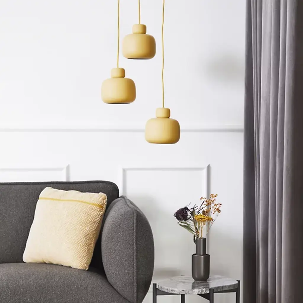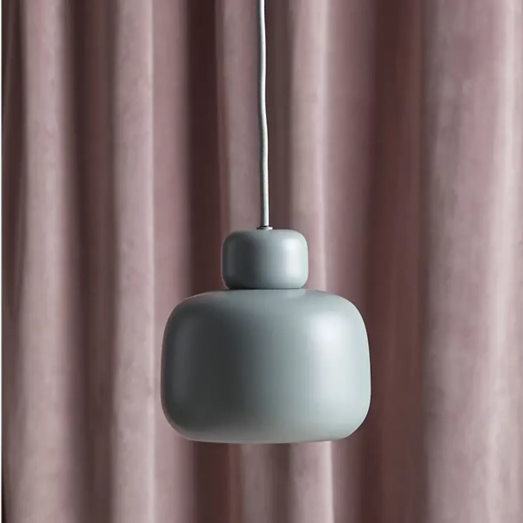 The Stone Mini Pendant from Woud is an artful piece, capturing the soothing sense of balance, creativity, and natural beauty of stacked beach stones. Danish designer Philip Bro approaches the piece with the idea that serious design can be stylish, playful, and unexpected. The pendant sets a high-style tone first with a slender braided cord. This cord shares the color of the shade for a united look. The metal forms below delight in their plump shapes; they vary in size just like natural beach stones. Once on, the piece produces a soft, glare-reduced down glow.