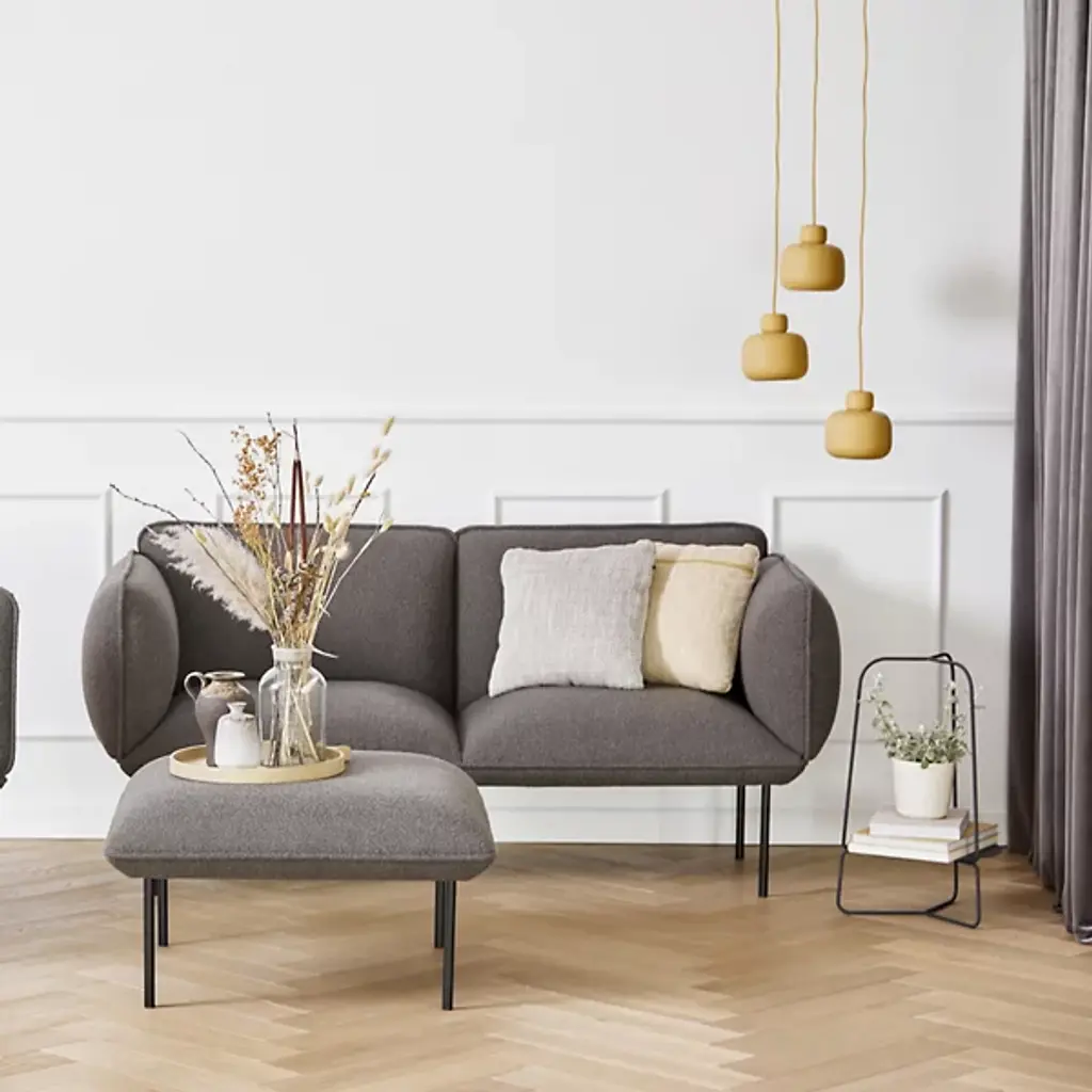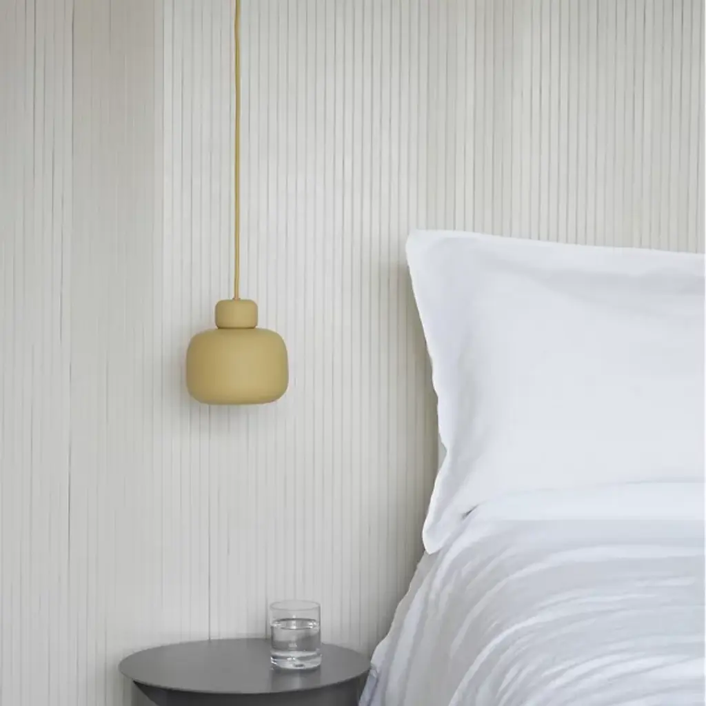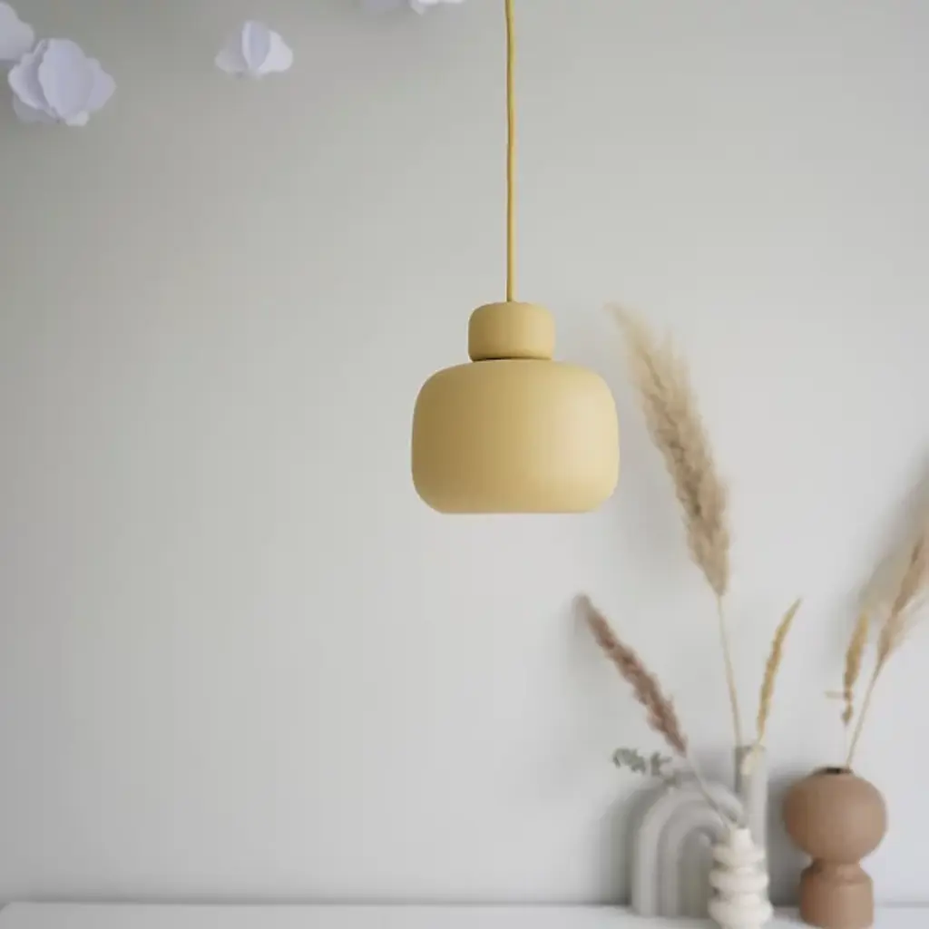 The Stone Mini Pendant from Woud is an artful piece, capturing the soothing sense of balance, creativity, and natural beauty of stacked beach stones. Danish designer Philip Bro approaches the piece with the idea that serious design can be stylish, playful, and unexpected. The pendant sets a high-style tone first with a slender braided cord. This cord shares the color of the shade for a united look. The metal forms below delight in their plump shapes; they vary in size just like natural beach stones. Once on, the piece produces a soft, glare-reduced down glow.