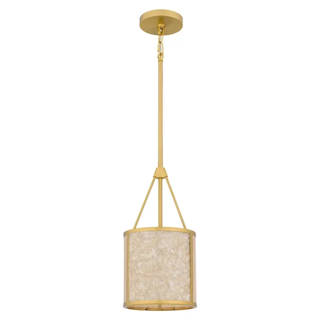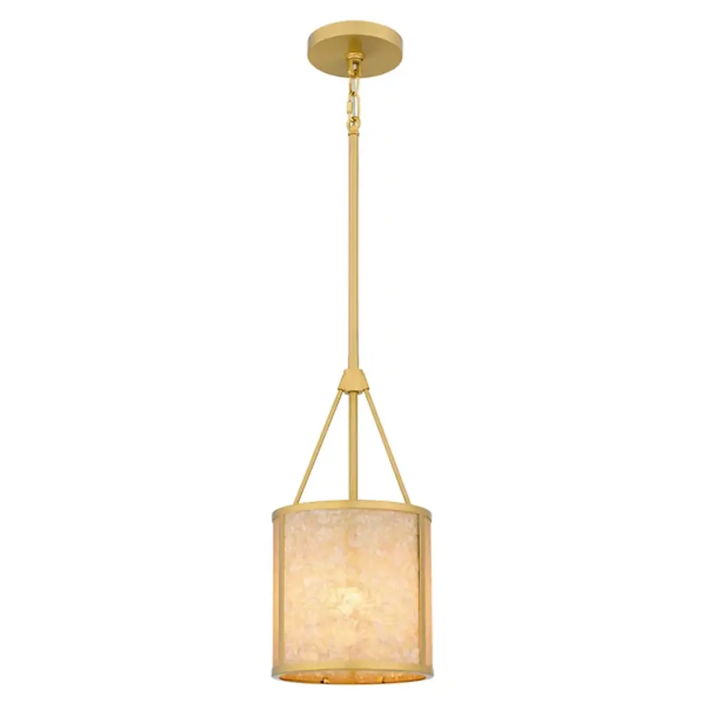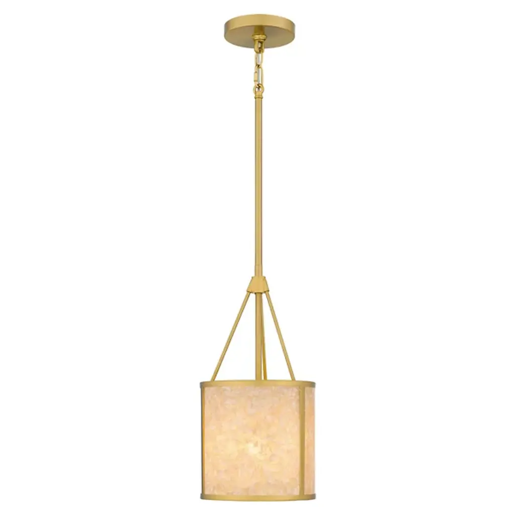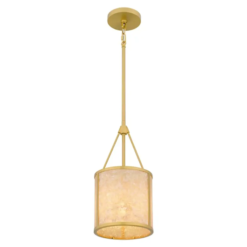 The Stoneland Mini Pendant from Quoizel brings a breath of coastal allure to your living areas. It features an acrylic shade ingeniously designed to mimic the ethereal beauty of Capiz shells, creating a soft, dispersed glow. Perfect for kitchen islands, bathroom vanities, or clustered in a series over a dining table, the Stoneland Mini Pendant offers versatile lighting with a unique twist. Its compact size makes it ideal for smaller spaces where you want to make a stylish impact without overpowering the room.
