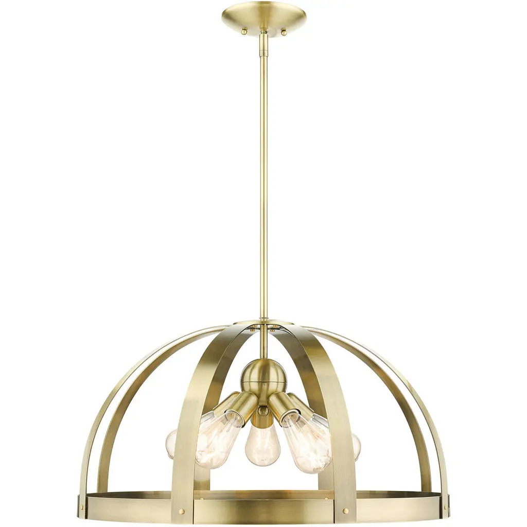 Stoneridge 5 Light 24 Inch Antique Brass Pendant Chandelier Ceiling Light