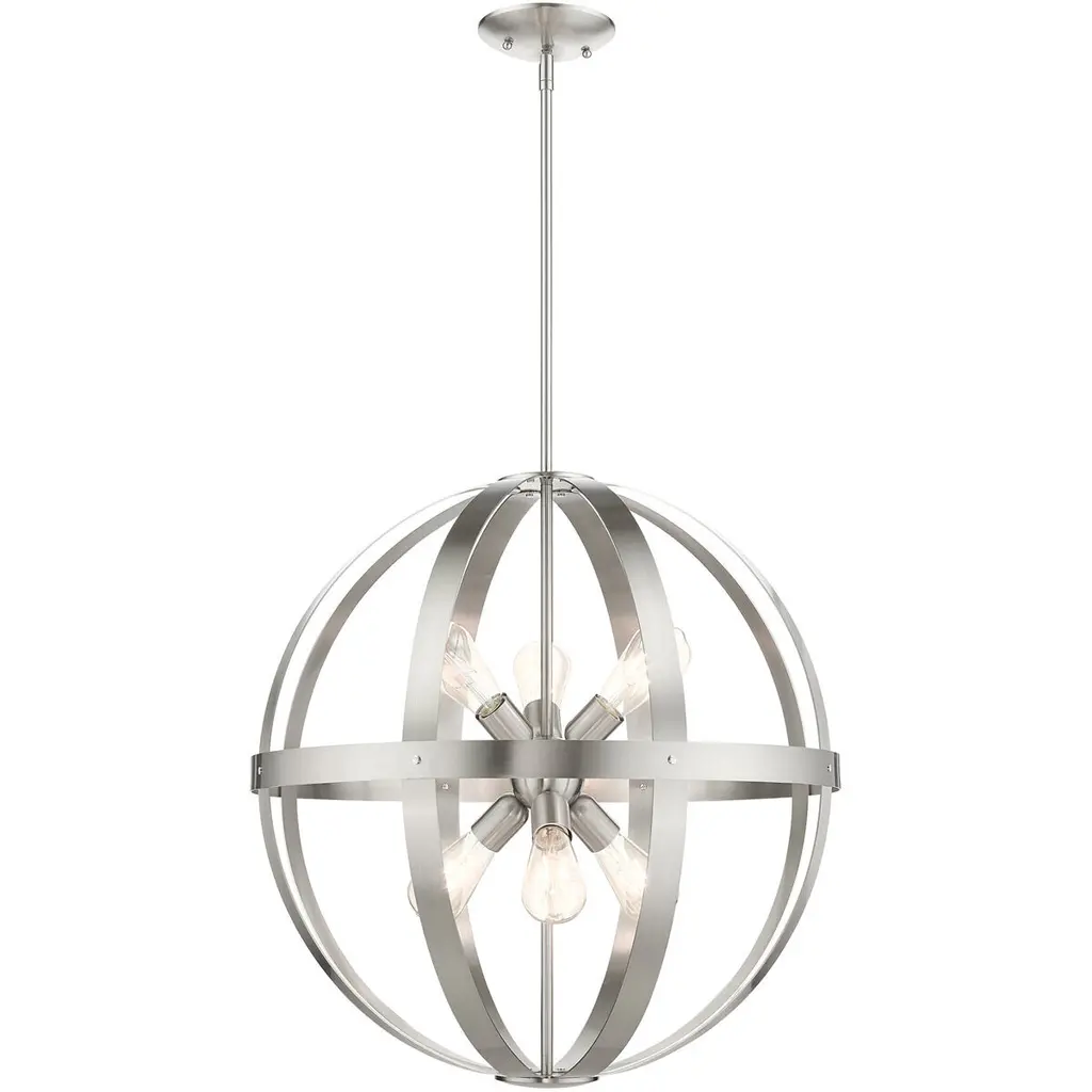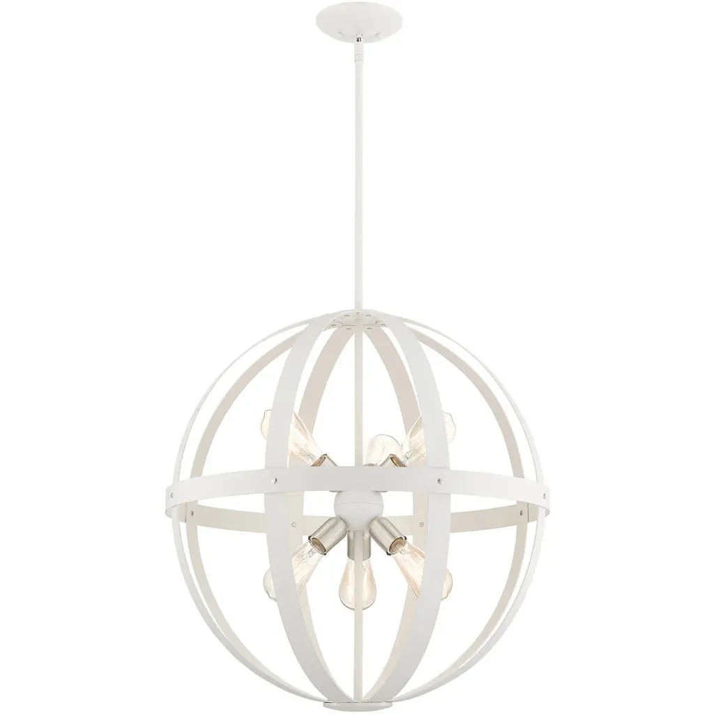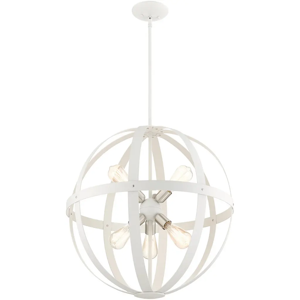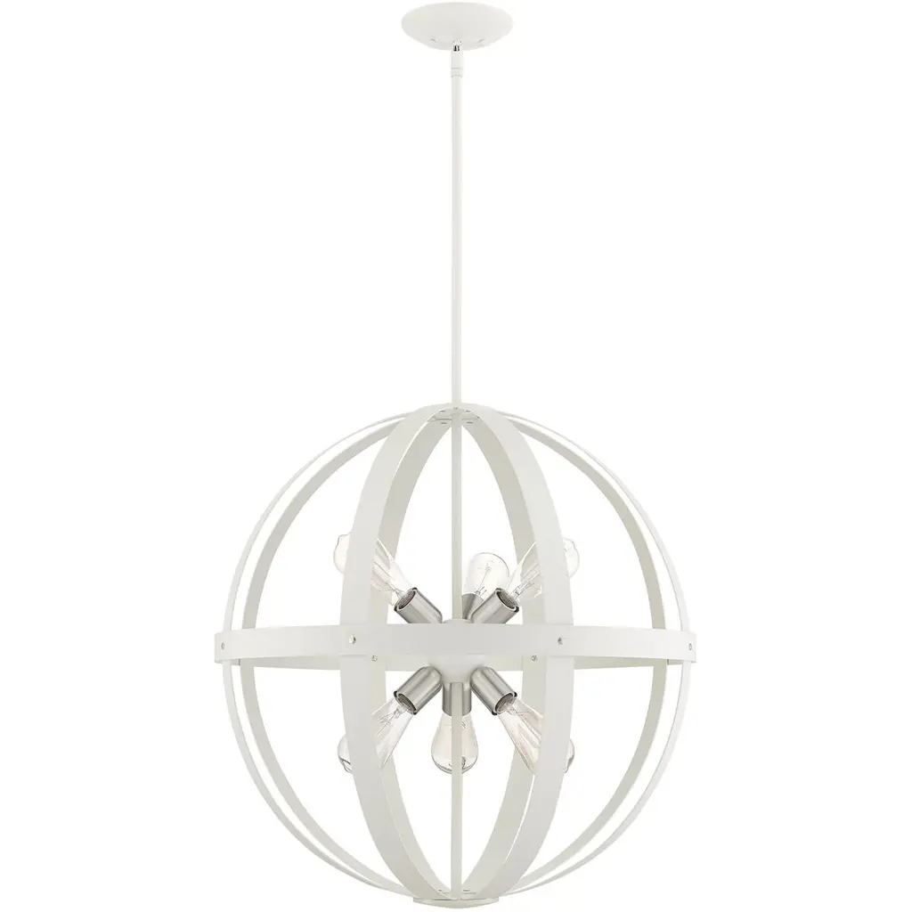 6 Lt Textured White with Brushed Nickel Finish Cluster Pendant Chandelier