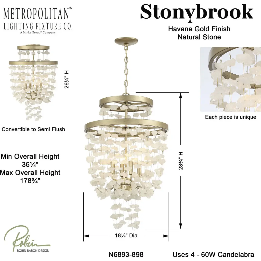 This 4 light Pendant Convertible To Semi Flush from the Stonybrook collection by Metropolitan will enhance your home with a perfect mix of form and function. The features include a Havana Gold finish applied by experts. This item qualifies for free shipping!