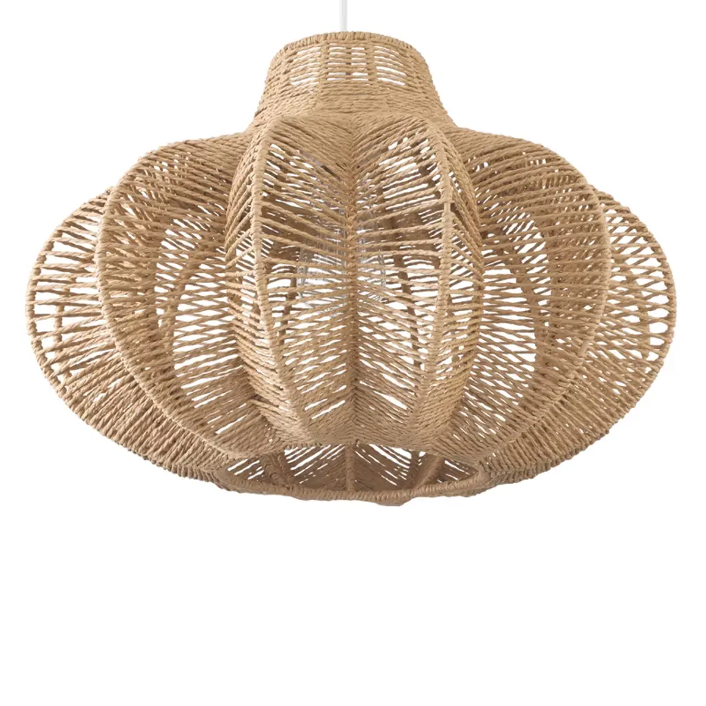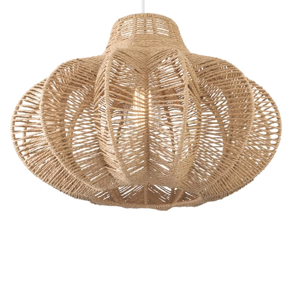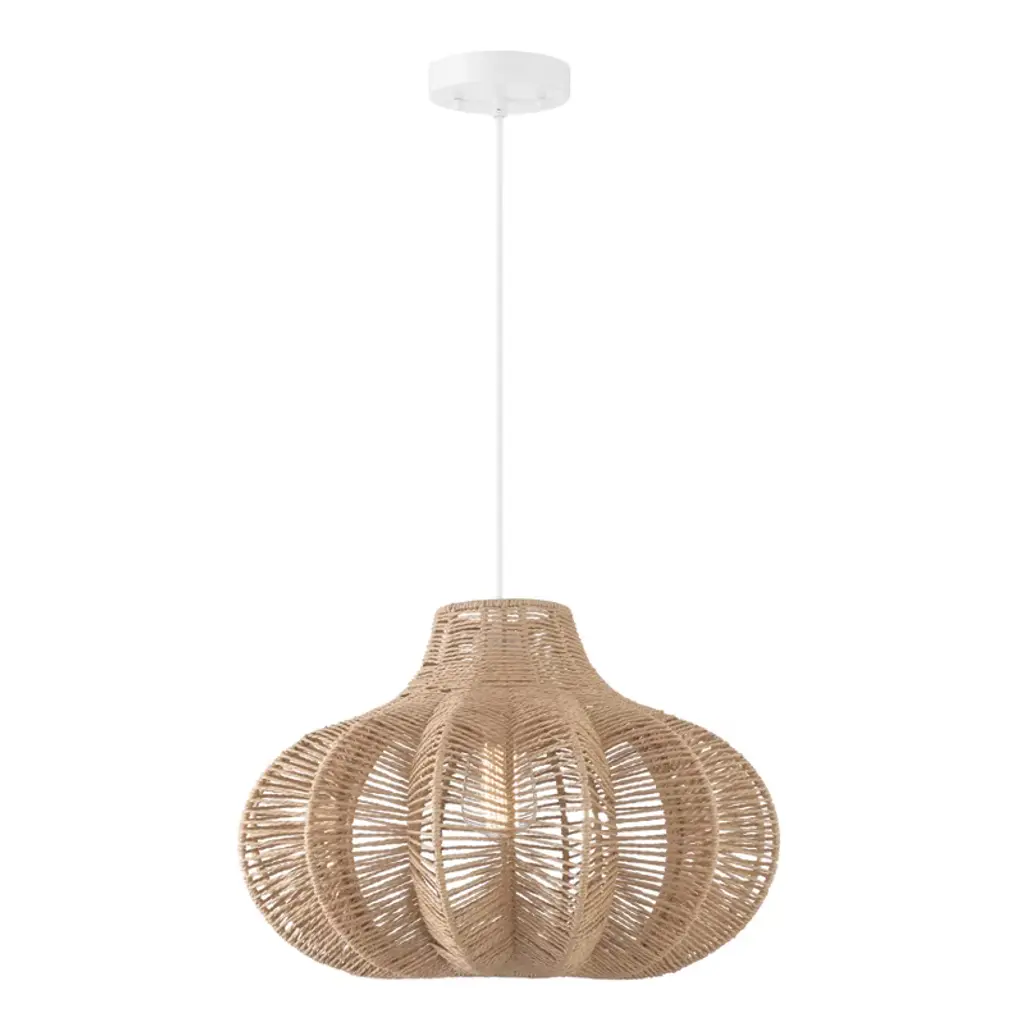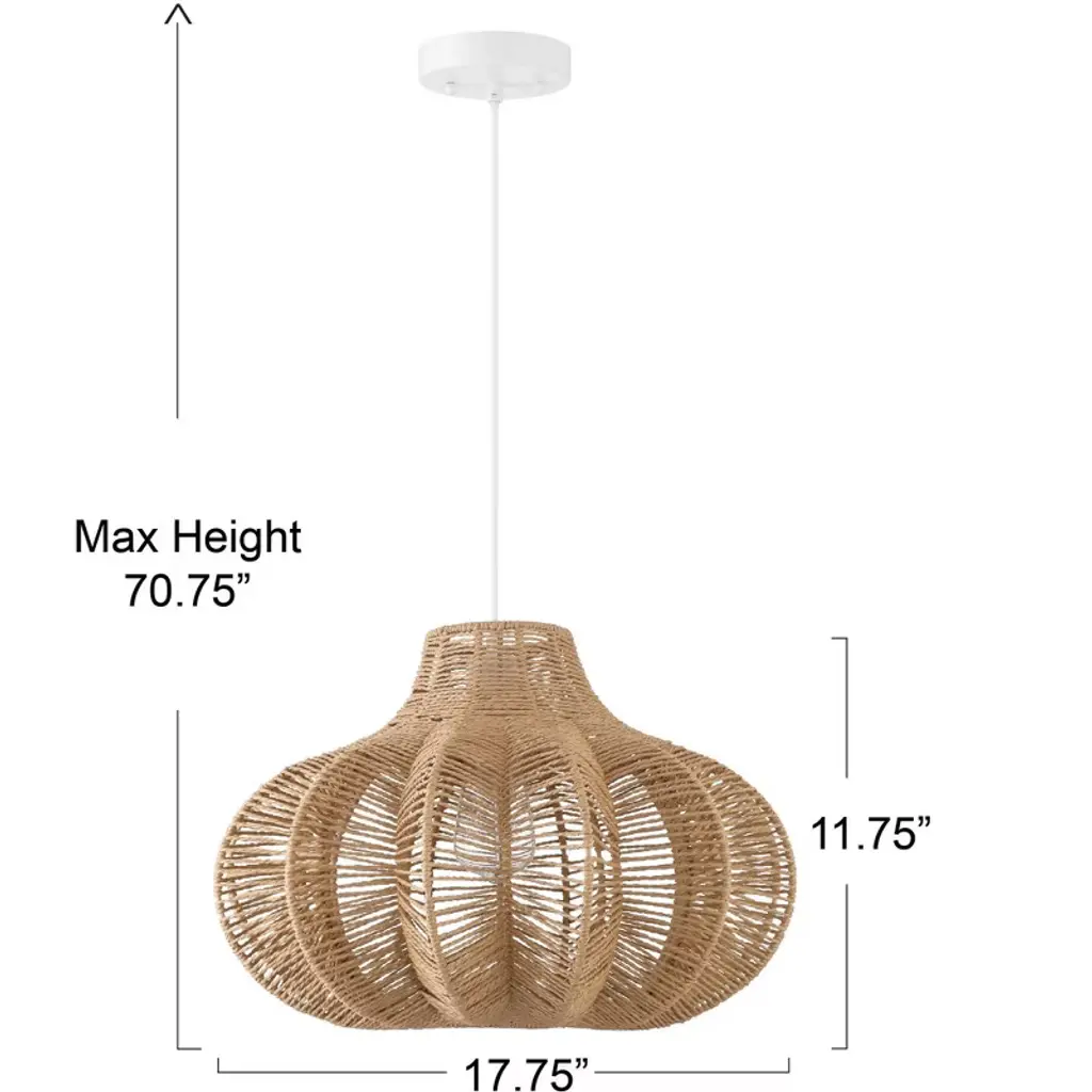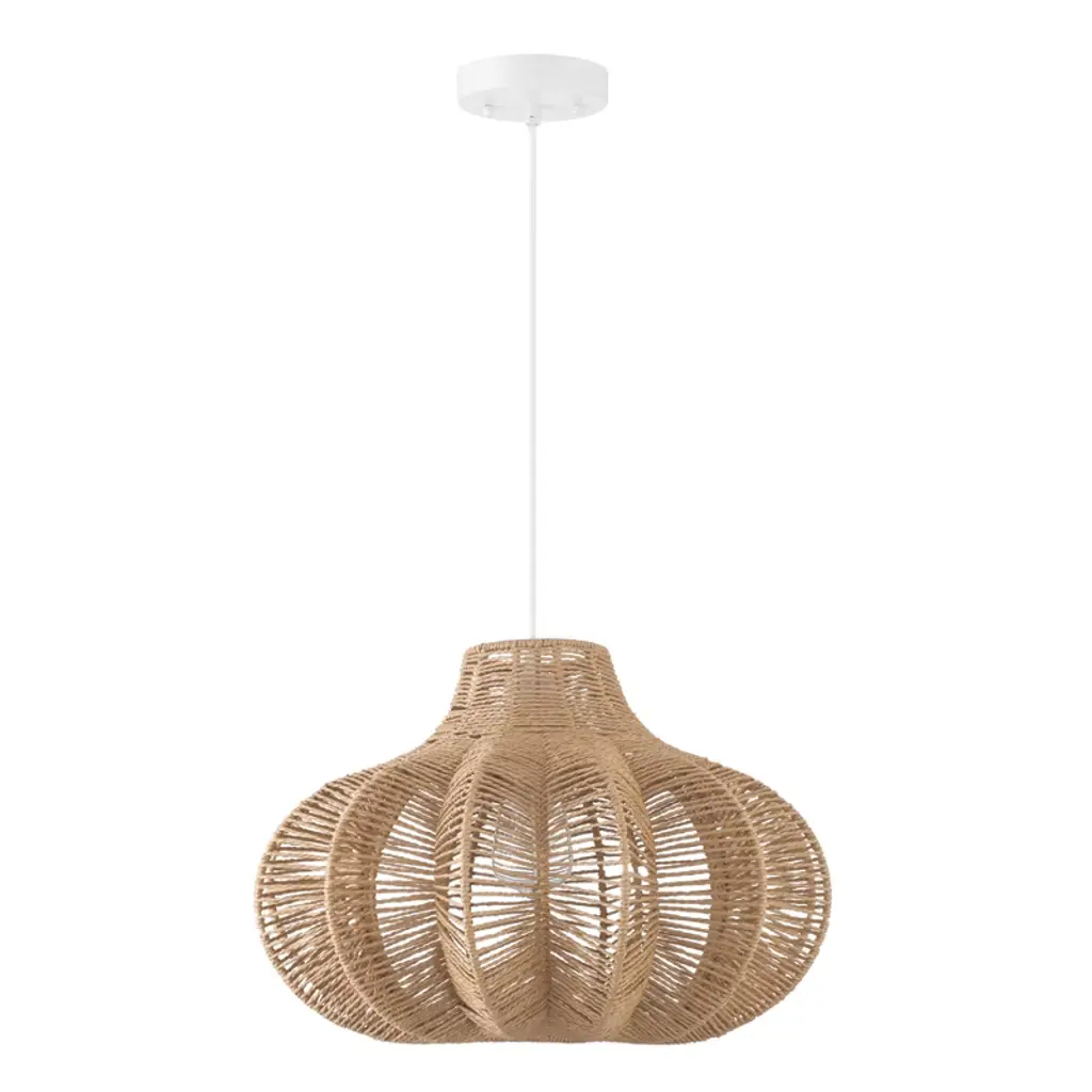 Storied Home Boho Handwoven Paper Rope And Metal Ceiling Pendant Lamp, Natural