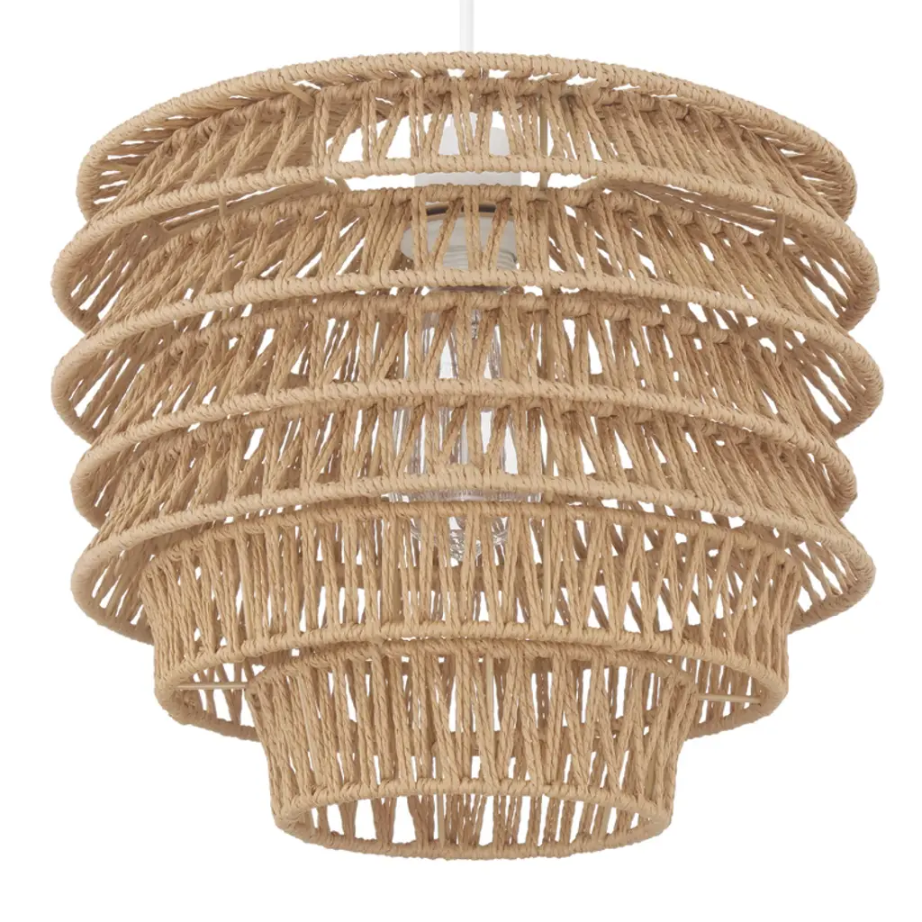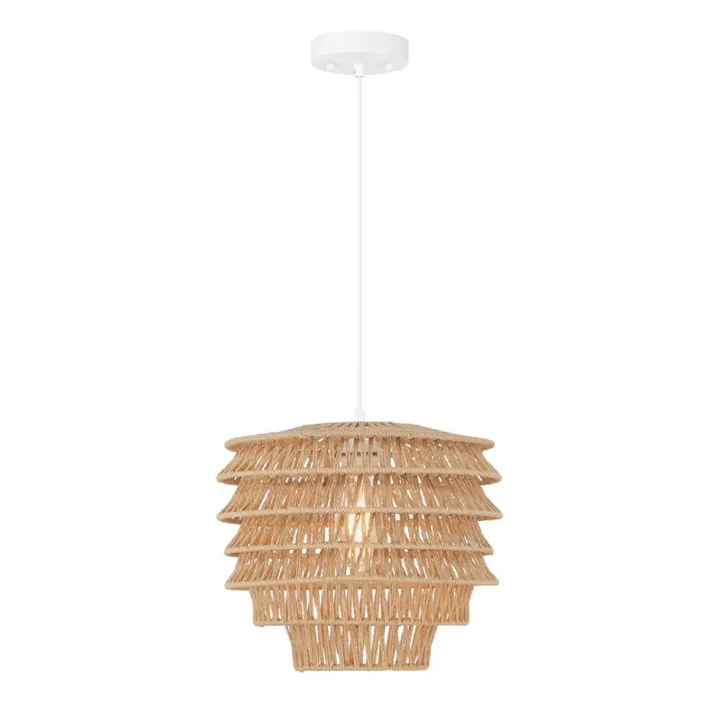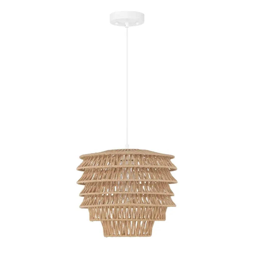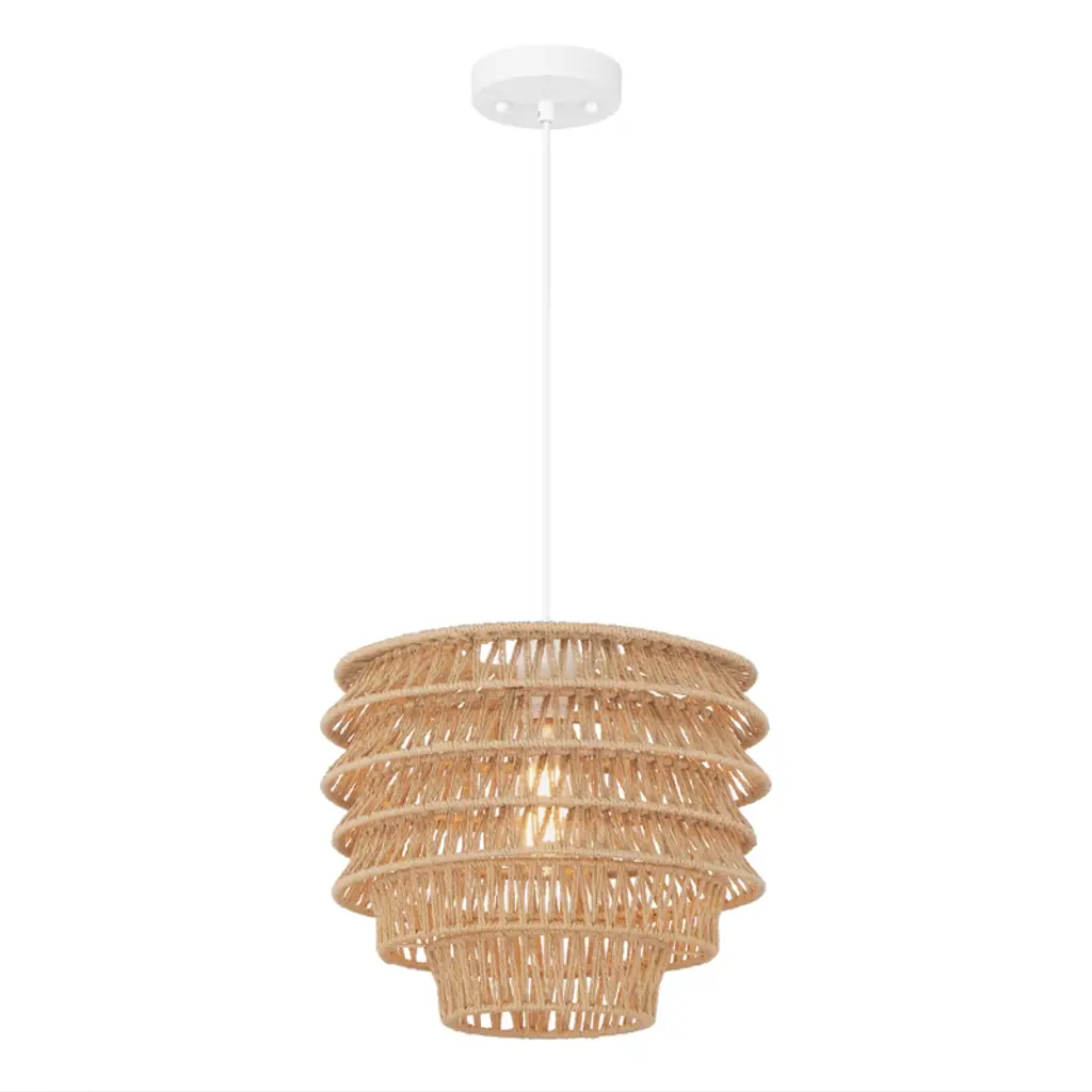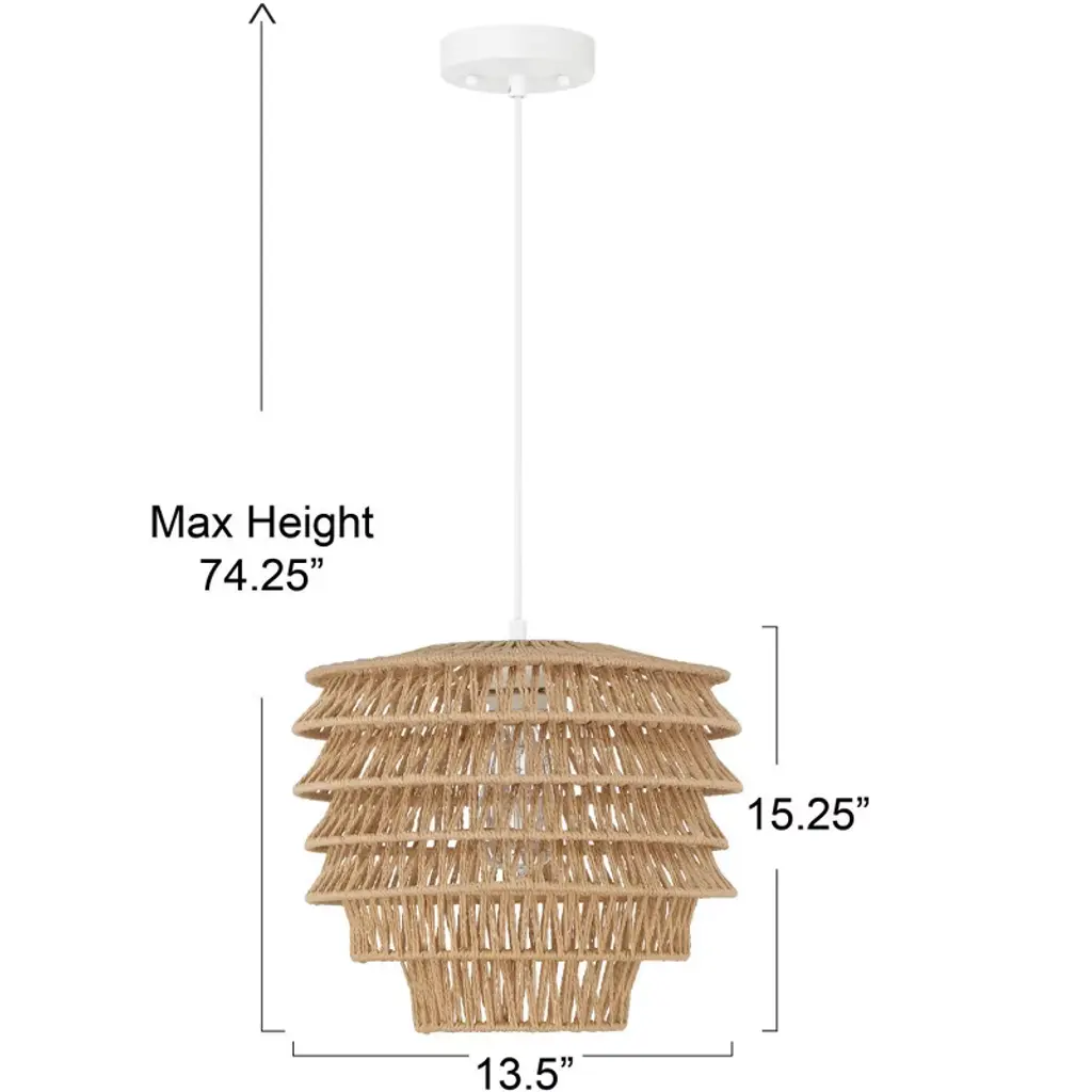 Storied Home Boho Handwoven Tiered Ceiling Pendant Lamp, Natural