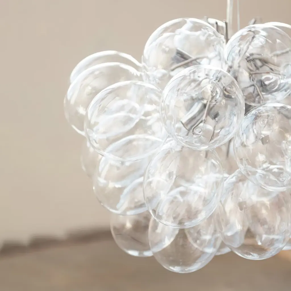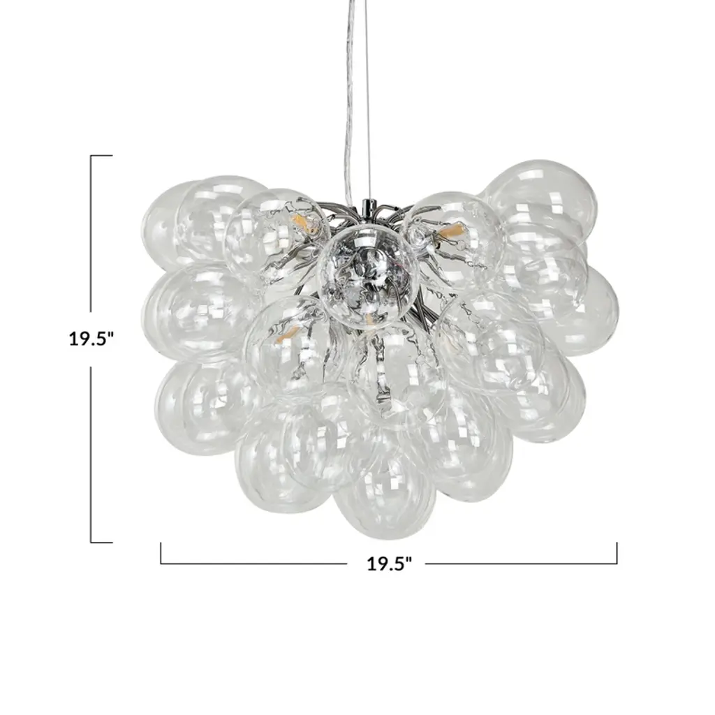 This Glass and Metal Pendant Lamp is a stunning lighting fixture that combines both form and function. The lamp provides ample illumination and creates a warm, inviting atmosphere in any space. The 6-foot cord allows for versatile installation options, making it suitable for various ceiling heights and room configurations. Designed to be hardwired, this pendant lamp requires 8 G9 LED bulbs, each with a maximum wattage of 25 watts, ensuring energy efficiency and bright lighting. The lamp's dimensions, measuring 19.5 inches in diameter and 19.5 inches in height, perfect for dining rooms, living areas, or entryways. Its modern and elegant style seamlessly integrates into contemporary interiors, adding a touch of sophistication and charm to any room.