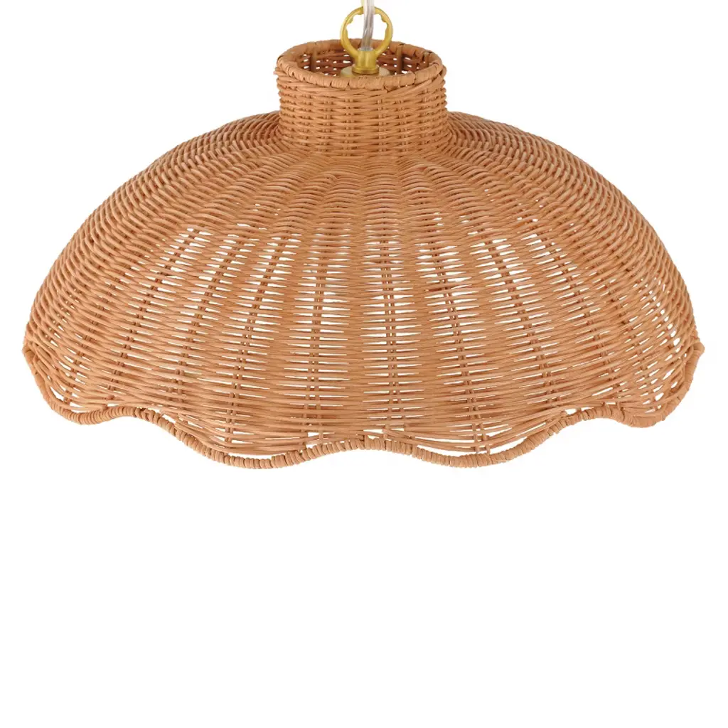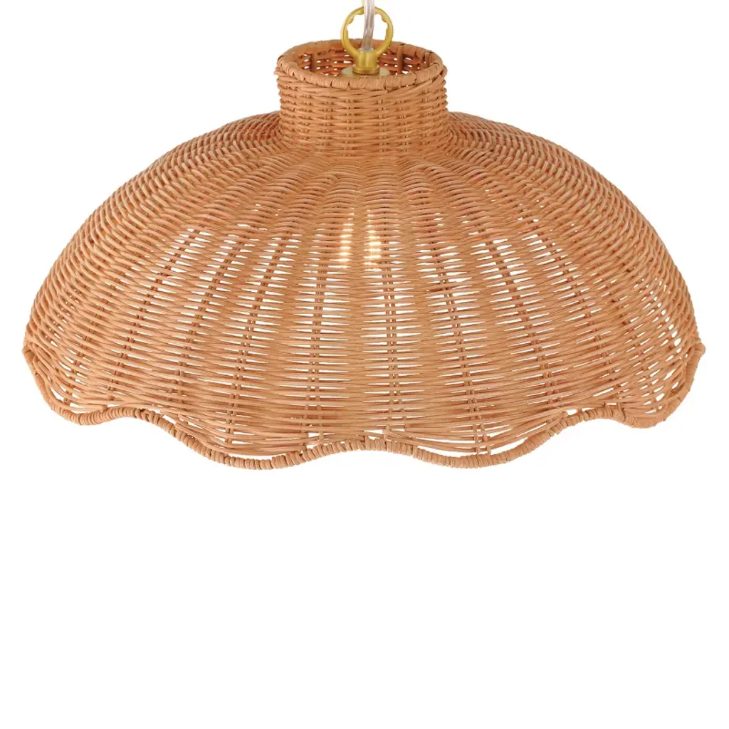 Storied Home Small Scalloped Rattan Pendant Lighting, Natural