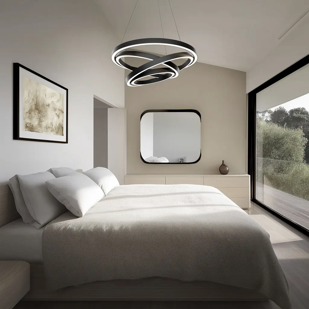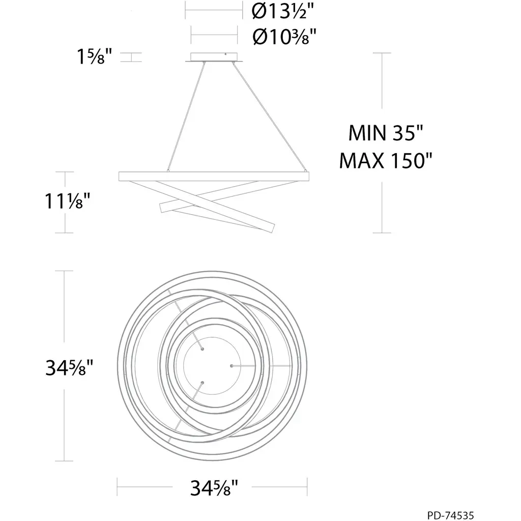 The contemporary Storm Chaser pendant light take your breath away with wings of metal backed by an LED diffuser that twist and turn in mid-air, crafting the illusion of a swirling cyclone of uninterrupted up and downlight. Offering color temperature adjustable LED illumination, this stunning 35-inch pendant is finished in crisp black.