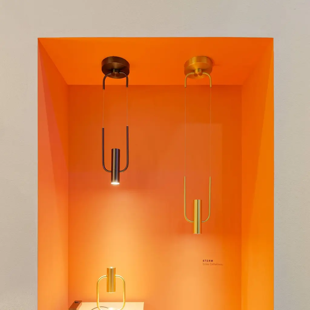 Storm’s seagoing inspiration also produces a unique pendant version with expandable cables from designer E?milie Cathelineau. In the shape of a ship’s lantern, the fixture incorporates an integrated LED light source for warm downward-facing illumination. And the range of satin-metal finishes bring a versatility to grace nearly any environ.