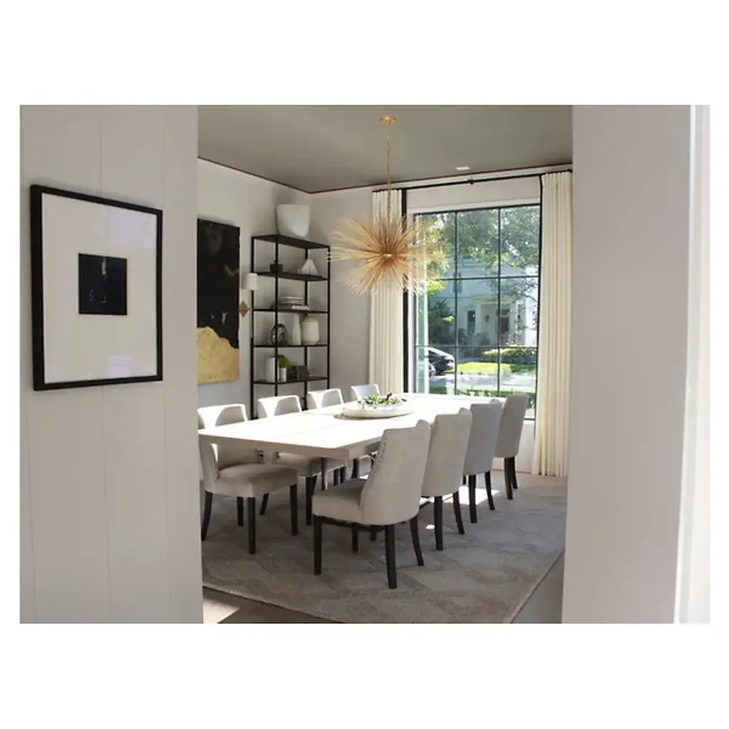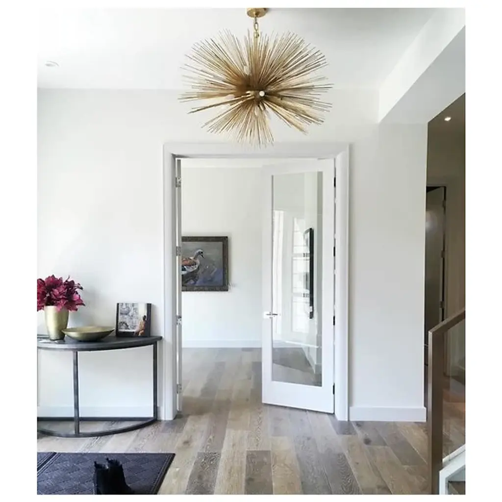 The Strada Oval Pendant by Visual Comfort Signature, formerly known as Visual Comfort, brings a mid-century modern flair to your living space, featuring an array of thin metal rods that extend from a central spherical hub. Exposed lamping hides within the partially transparent structure which gives its warm radiance a decorative, glistening quality. An ideal statement-making piece for wide open spaces such as entryways, dining rooms, and living rooms.