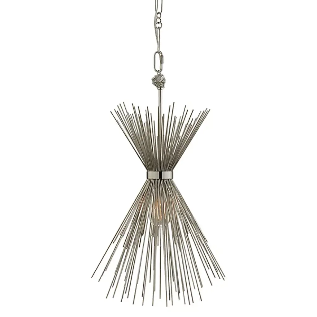 The Strada Pendant by Visual Comfort Signature, formerly known as Visual Comfort, provides a decorative, organic atmosphere to your living space. Reminiscent of bundled straw, its design features a series of thin metal stems that have been cinched at the middle by a rugged metal ring. The relative openness of the fixture allows light to shine through for a dynamic, shimmering ambiance that changes based on your perspective.