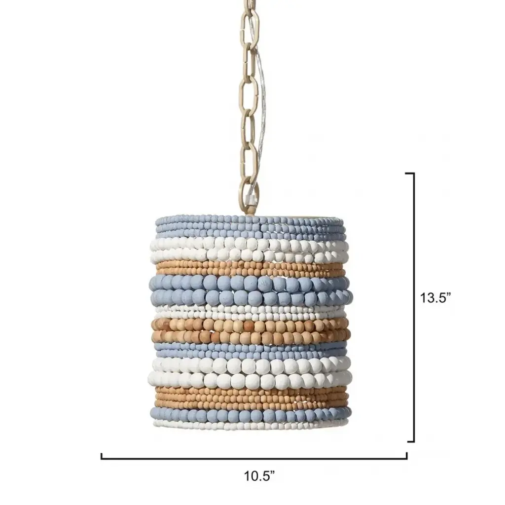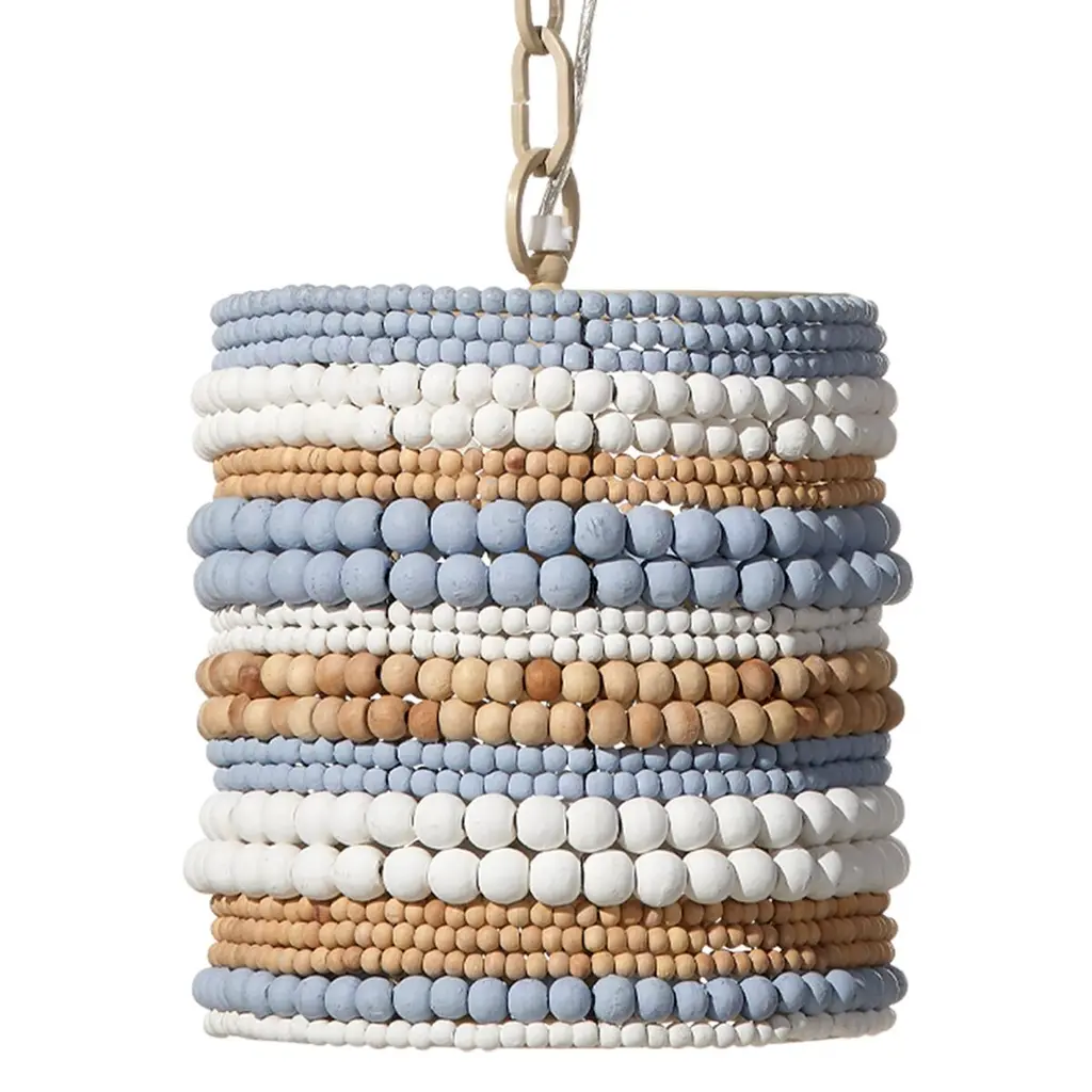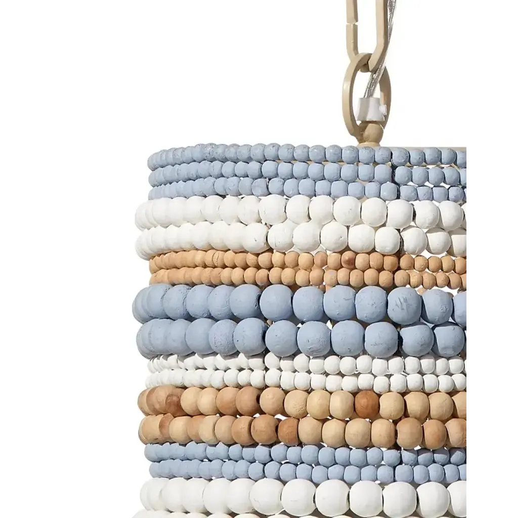 This easygoing, lighthearted look is created from dozens of hand-carved mango wood beads. To celebrate the beauty of the hardwood, our artisans give a selection of the beads a natural finish. Others are hand-painted in blue or white. Each is placed by hand. These pendants evoke ocean breezes and tropical destinations and are a wonderful way to create an at home oasis for your friends and family.